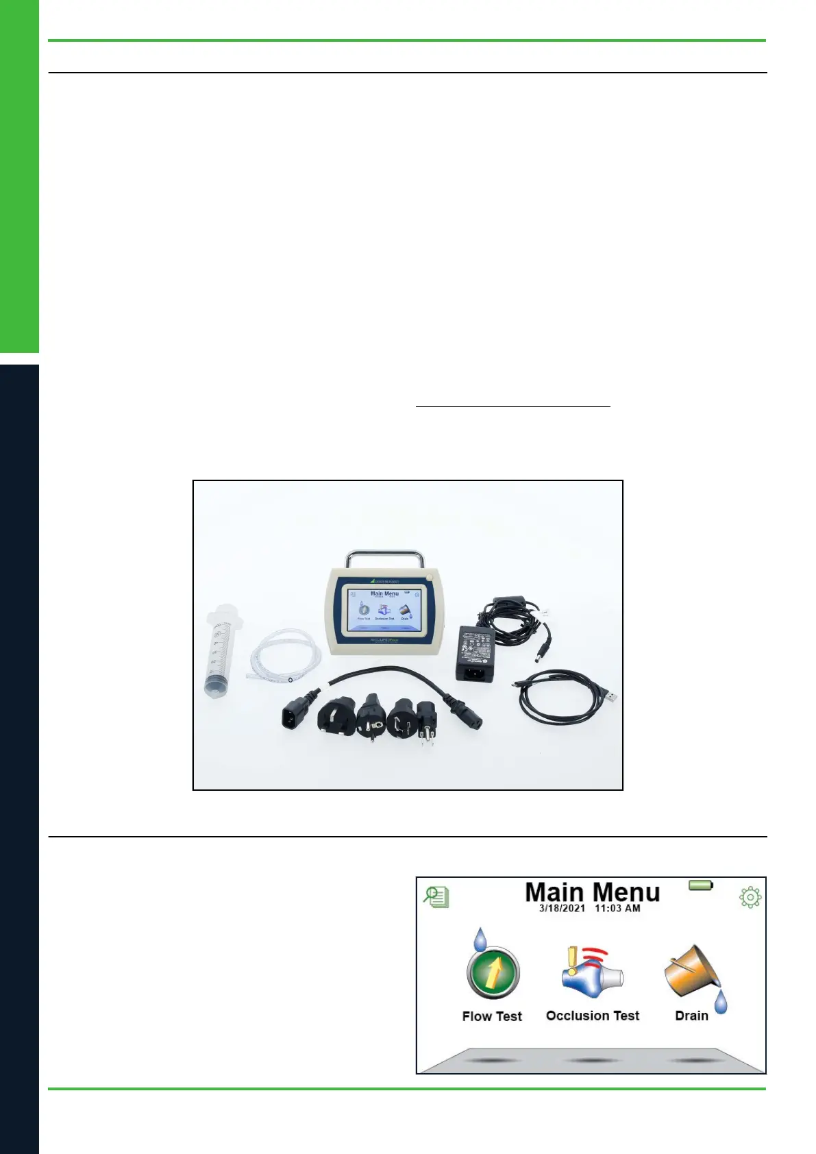 The occlusion test measures current pressure, elapsed time,