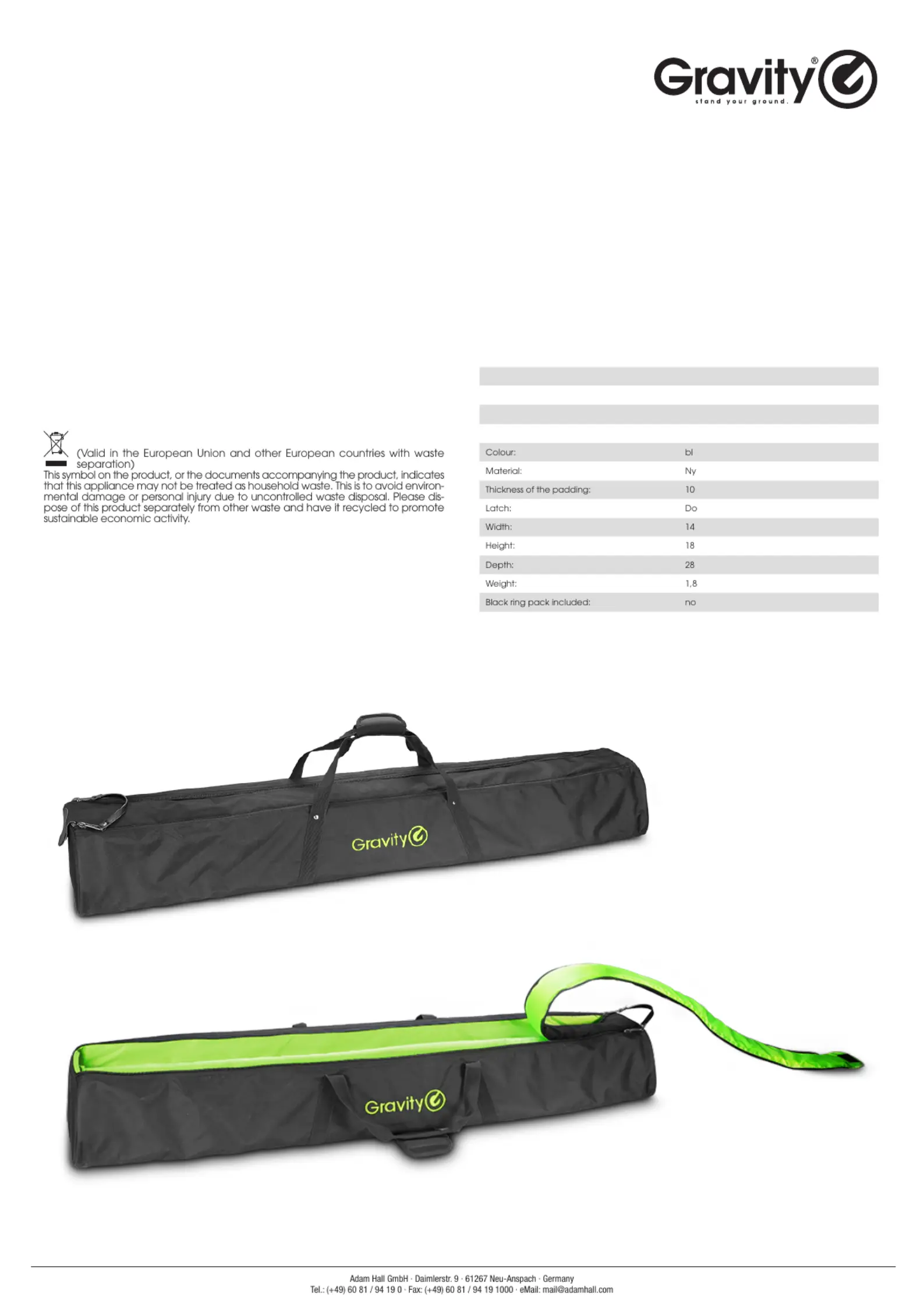 speaker stands. The bag is made from tough 600D nylon that is water repellent and