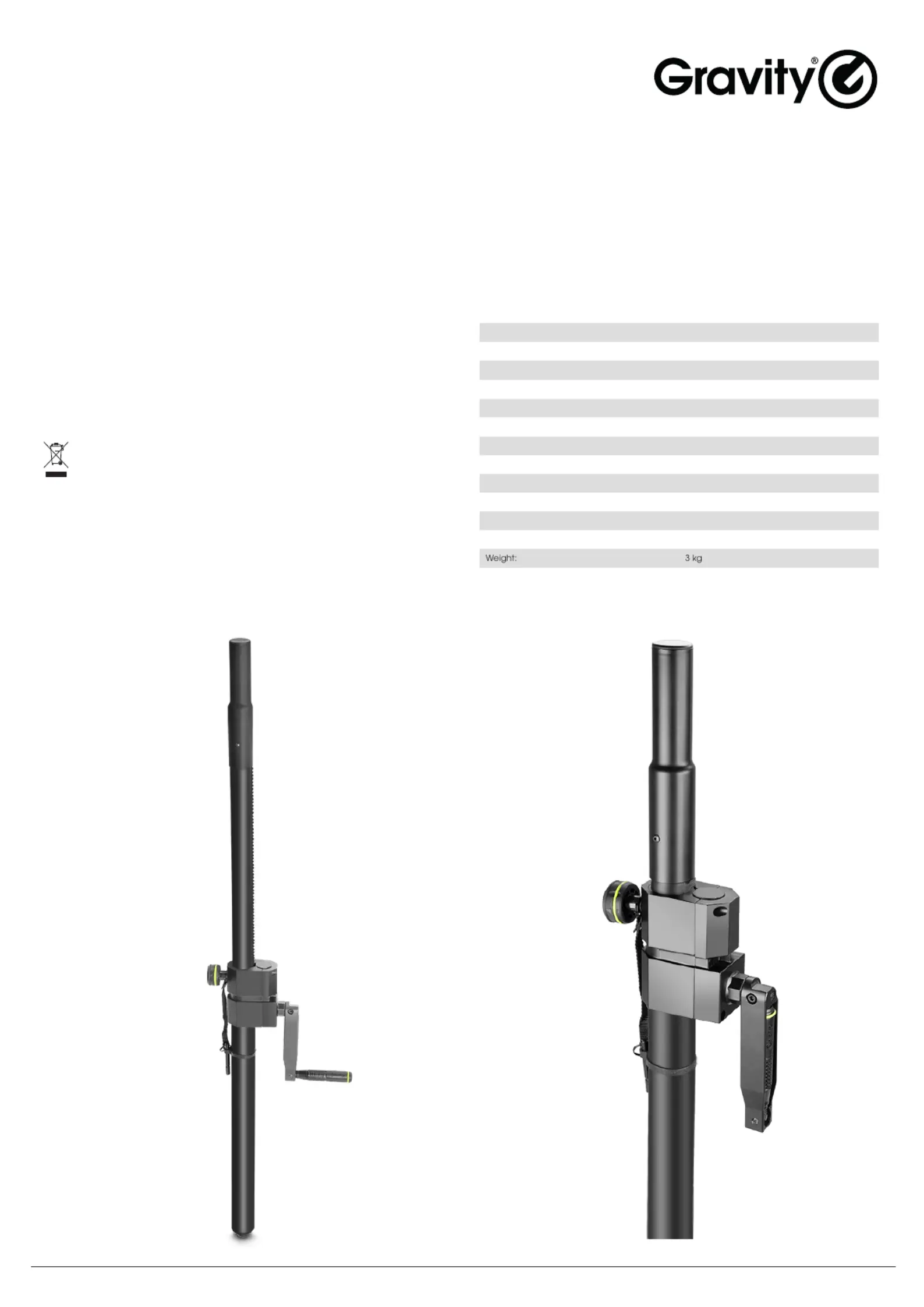 The Gravity SP 2472 B is a heavy-duty 35 mm speaker pole with convenient rack