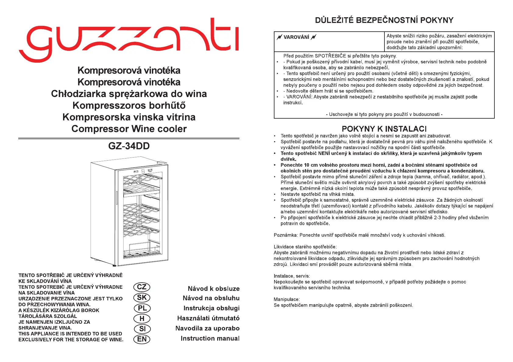 Läs gratis den bruksanvisning för Guzzanti GZ-34DD (28 sidor) i kategorin Vinklimatskåp. Guiden har ansetts hjälpsam av 21 personer och har ett genomsnittsbetyg på 4.5 stjärnor baserat på 11 recensioner. Har du en fråga om Guzzanti GZ-34DD eller vill du ställa frågor till andra användare av produkten? Ställ en fråga