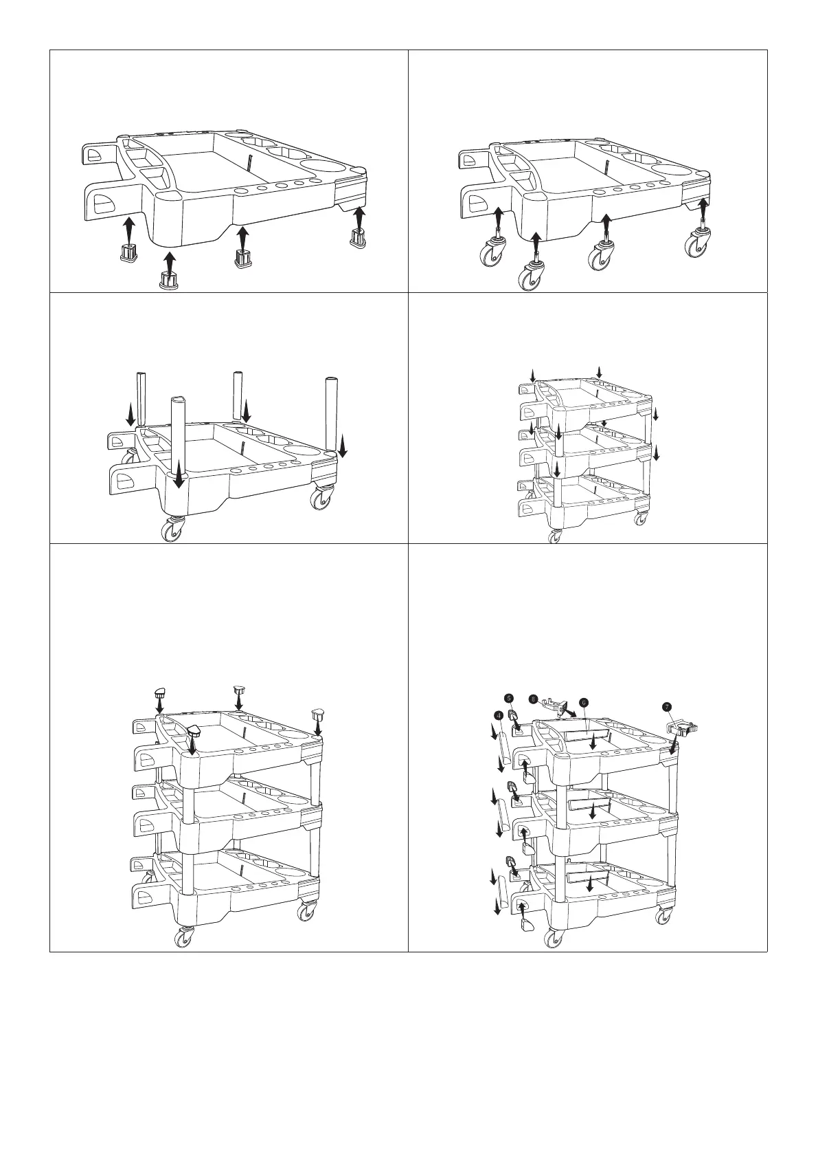 Insert 4 casters and check if they are installed properly. /