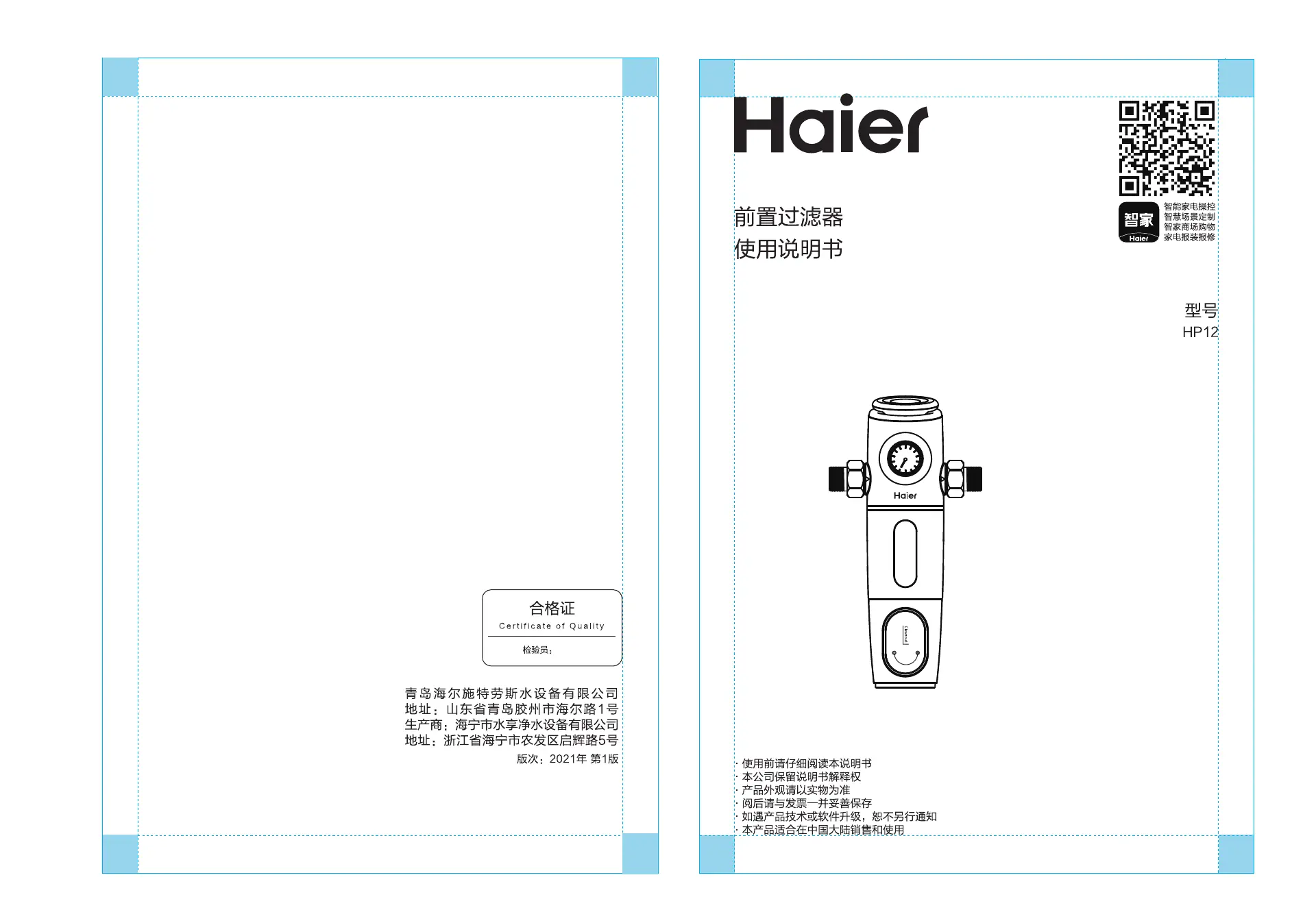 Läs gratis den bruksanvisning för Haier HP12 (8 sidor) i kategorin Vattenfilter. Guiden har ansetts hjälpsam av 36 personer och har ett genomsnittsbetyg på 4.2 stjärnor baserat på 4 recensioner. Har du en fråga om Haier HP12 eller vill du ställa frågor till andra användare av produkten? Ställ en fråga