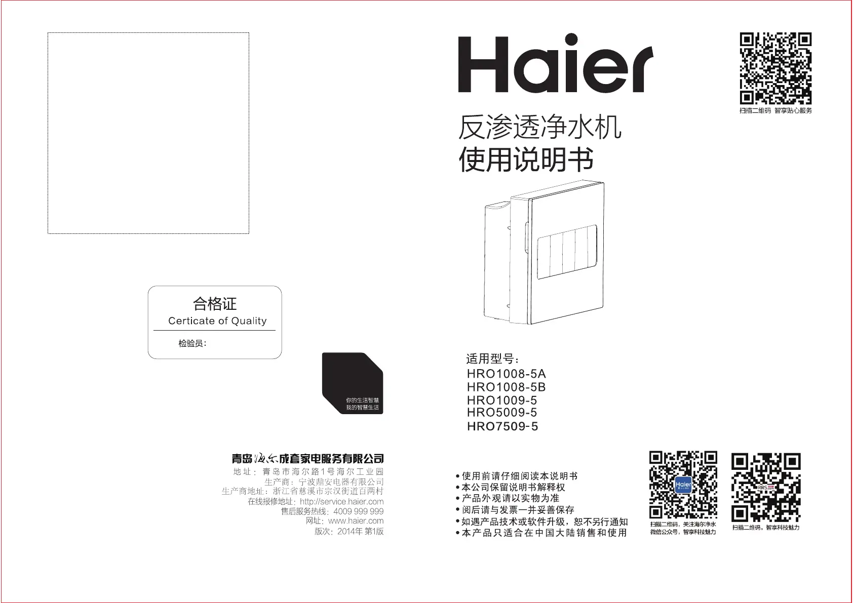 Läs gratis den bruksanvisning för Haier HRO1009-5 (10 sidor) i kategorin Vattenfilter. Guiden har ansetts hjälpsam av 21 personer och har ett genomsnittsbetyg på 4.3 stjärnor baserat på 9 recensioner. Har du en fråga om Haier HRO1009-5 eller vill du ställa frågor till andra användare av produkten? Ställ en fråga