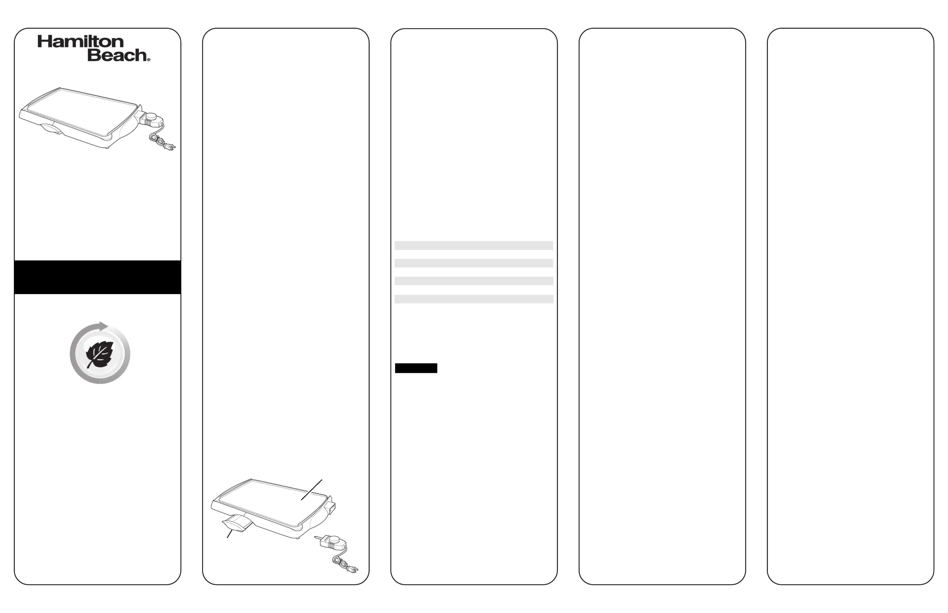 Grillplatta Hamilton Beach Manualer