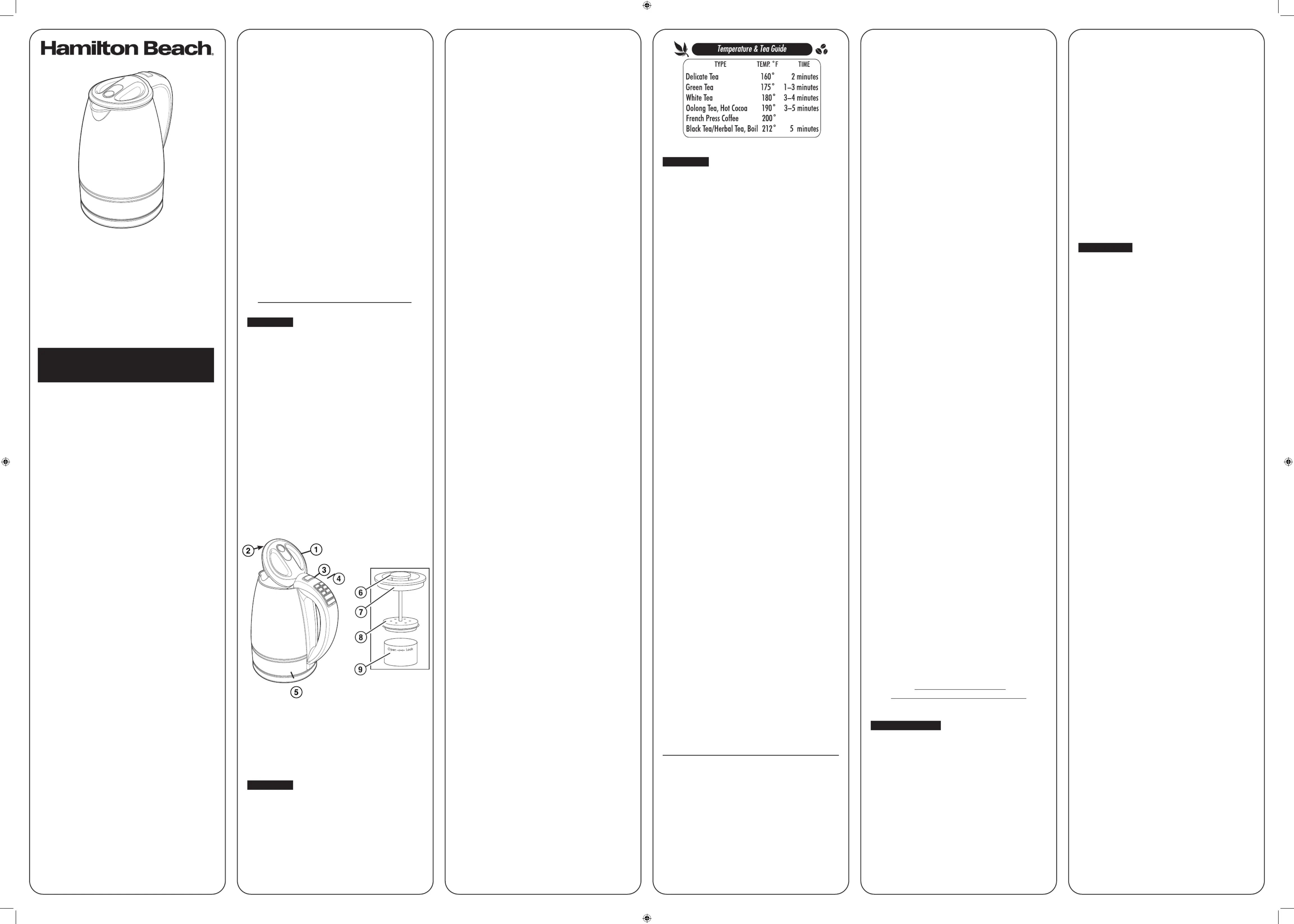 vattenkokare Hamilton Beach Manualer