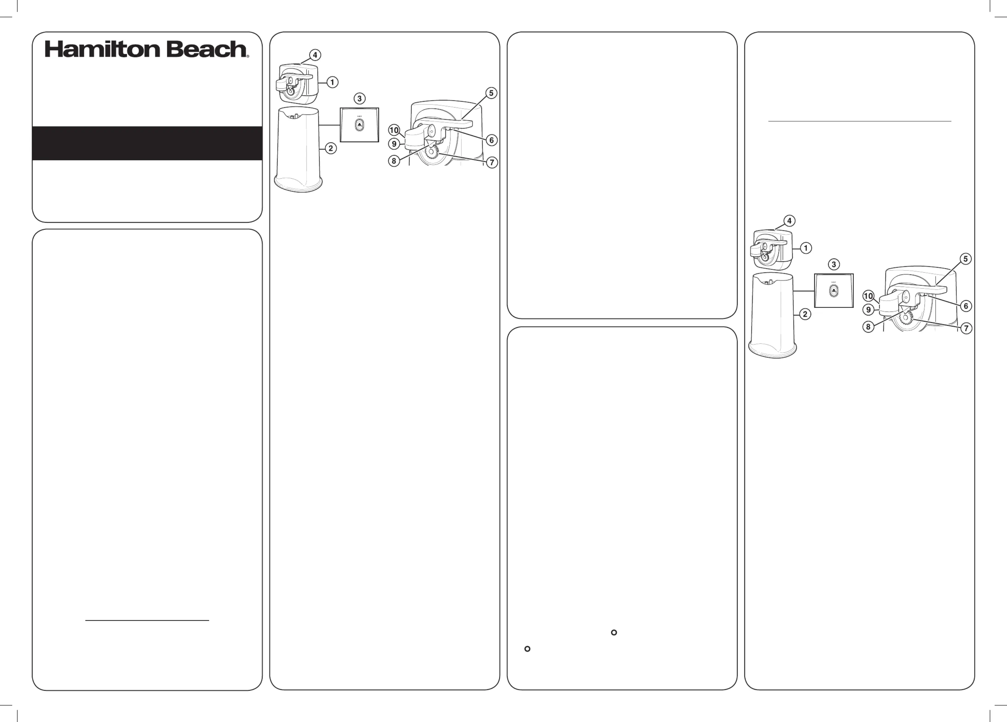 Blikopener Hamilton Beach Manualer