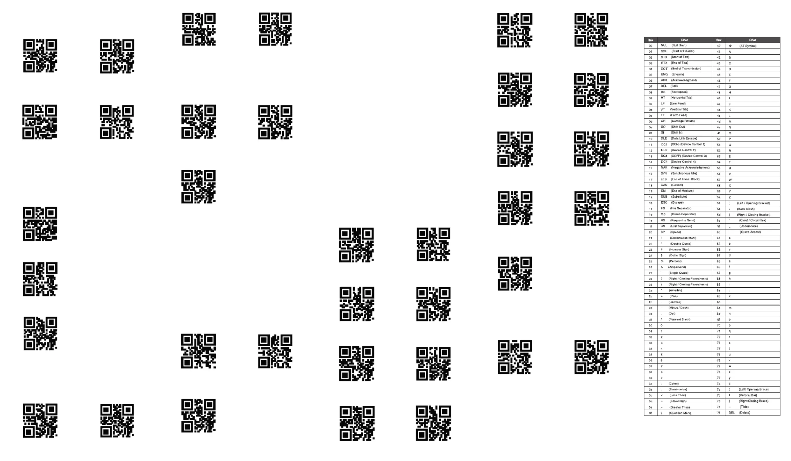 “Hexadecimal Codes Table” in this manual.