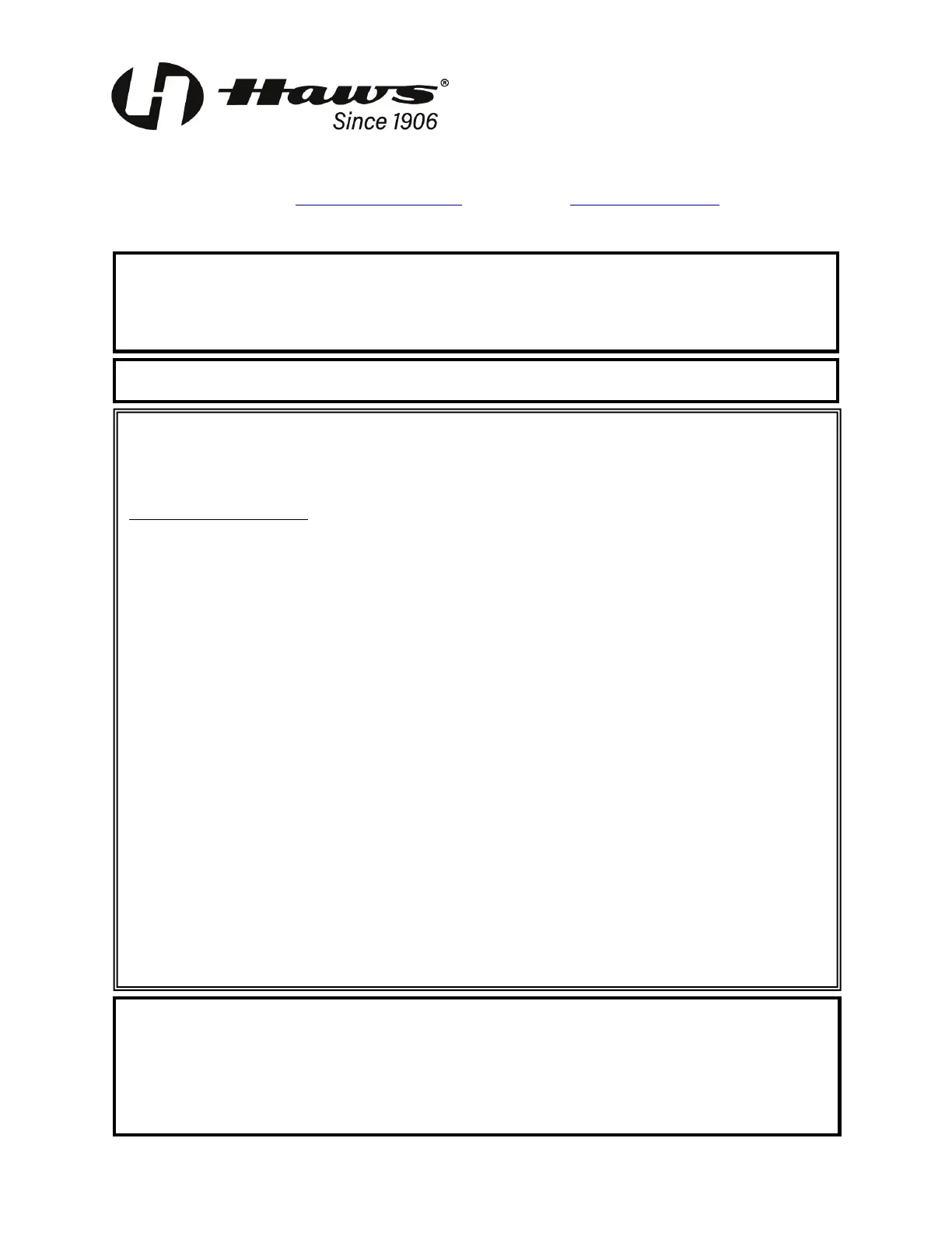 Equipment manufactured by HAWS is warranted to function if installation and maintenance instructions