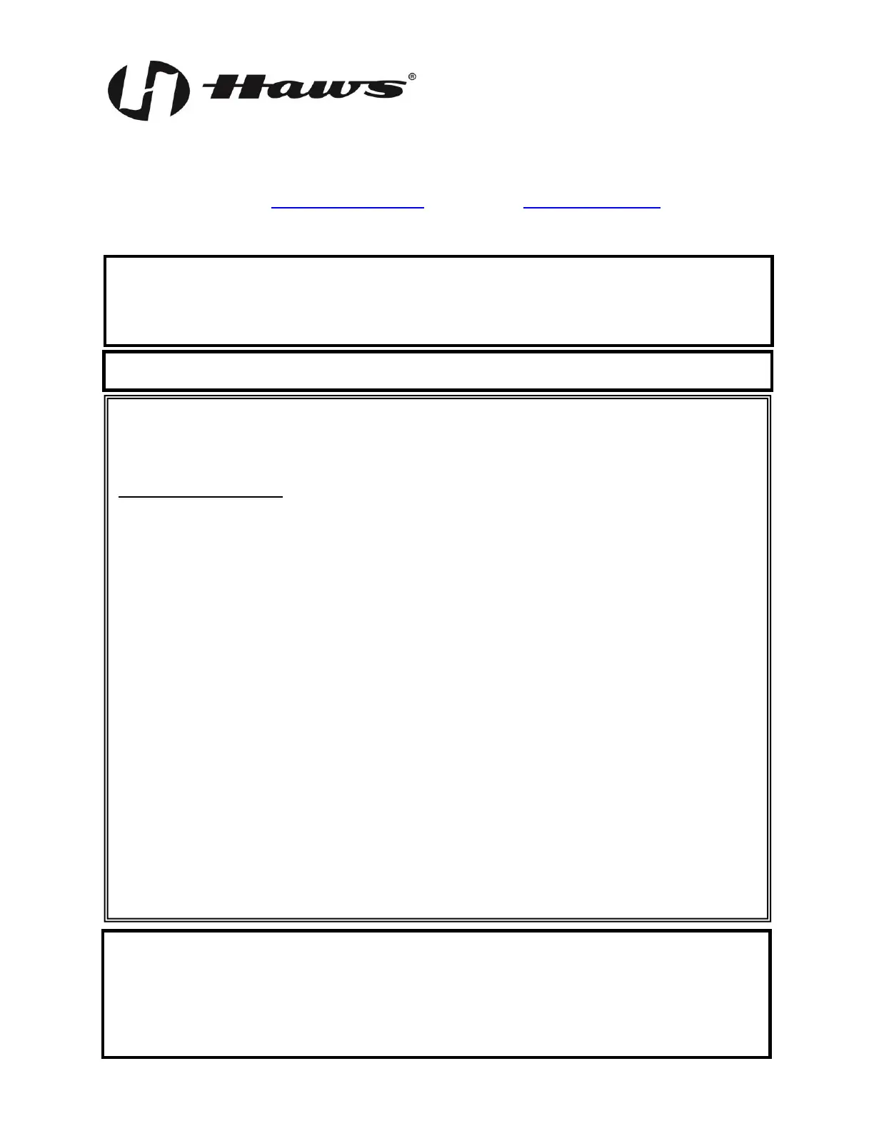 Equipment manufactured by HAWS is warranted to function if installation and maintenance instructions