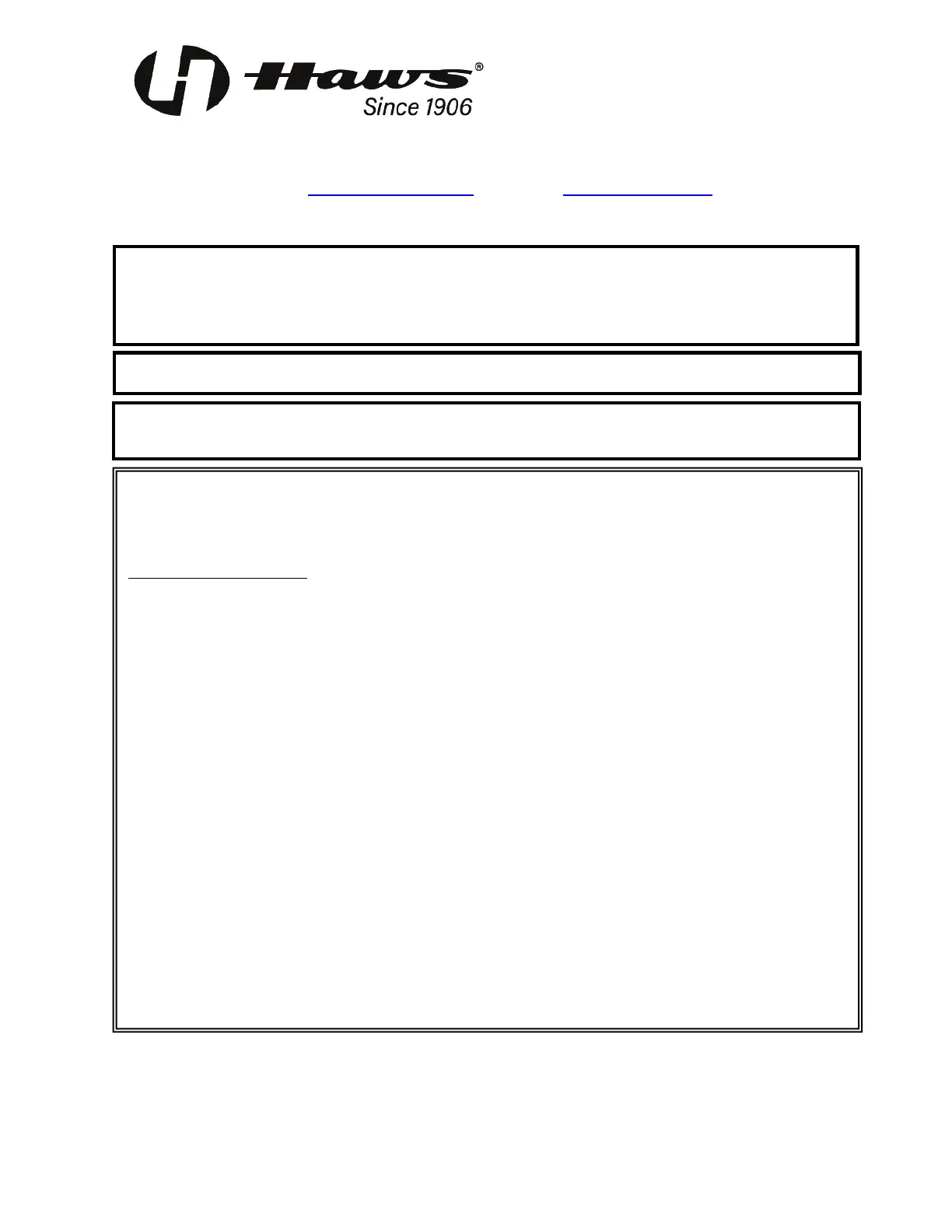 Equipment manufactured by HAWS is warranted to function if installation and maintenance instructions