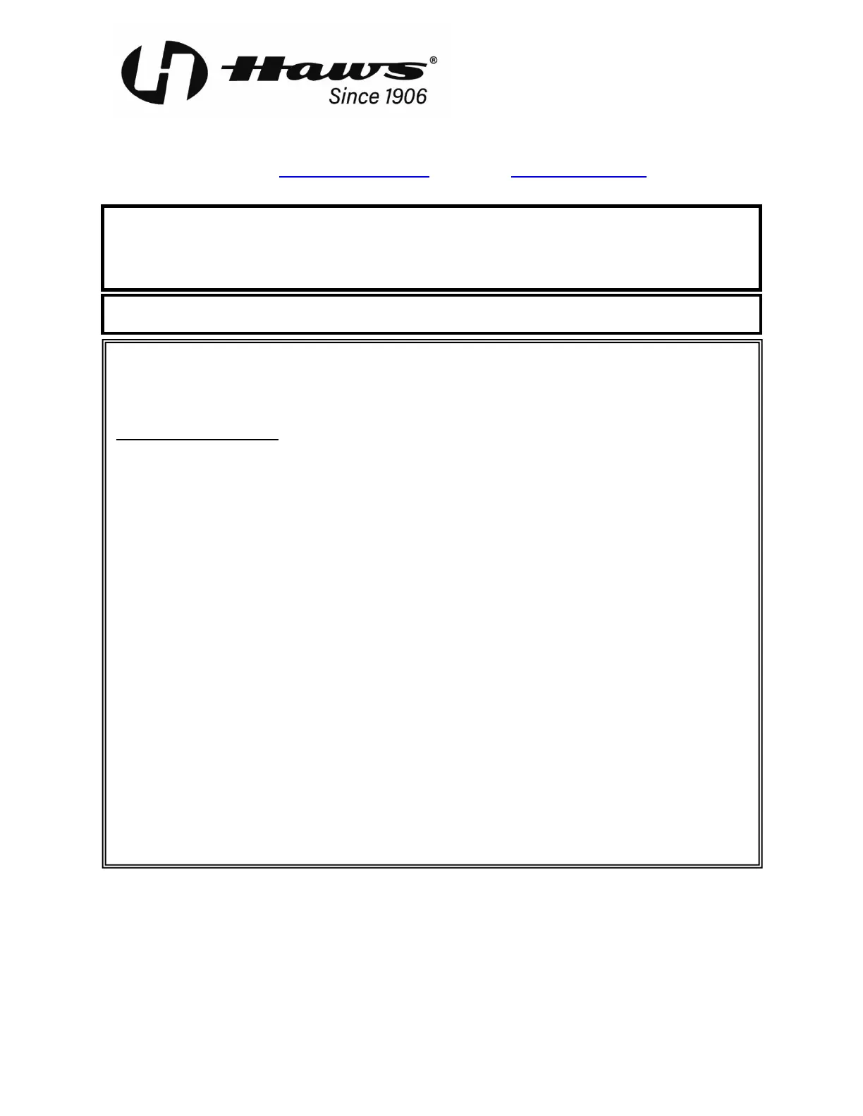 Equipment manufactured by HAWS is warranted to function if installation and maintenance instructions