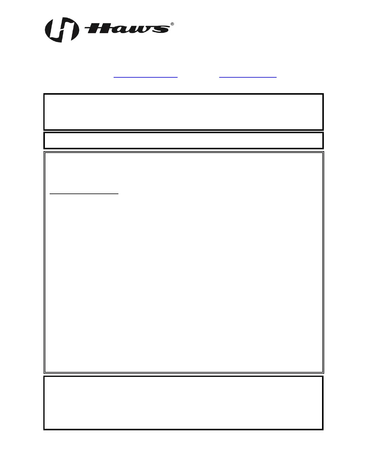 Equipment manufactured by HAWS is warranted to function if installation and maintenance instructions