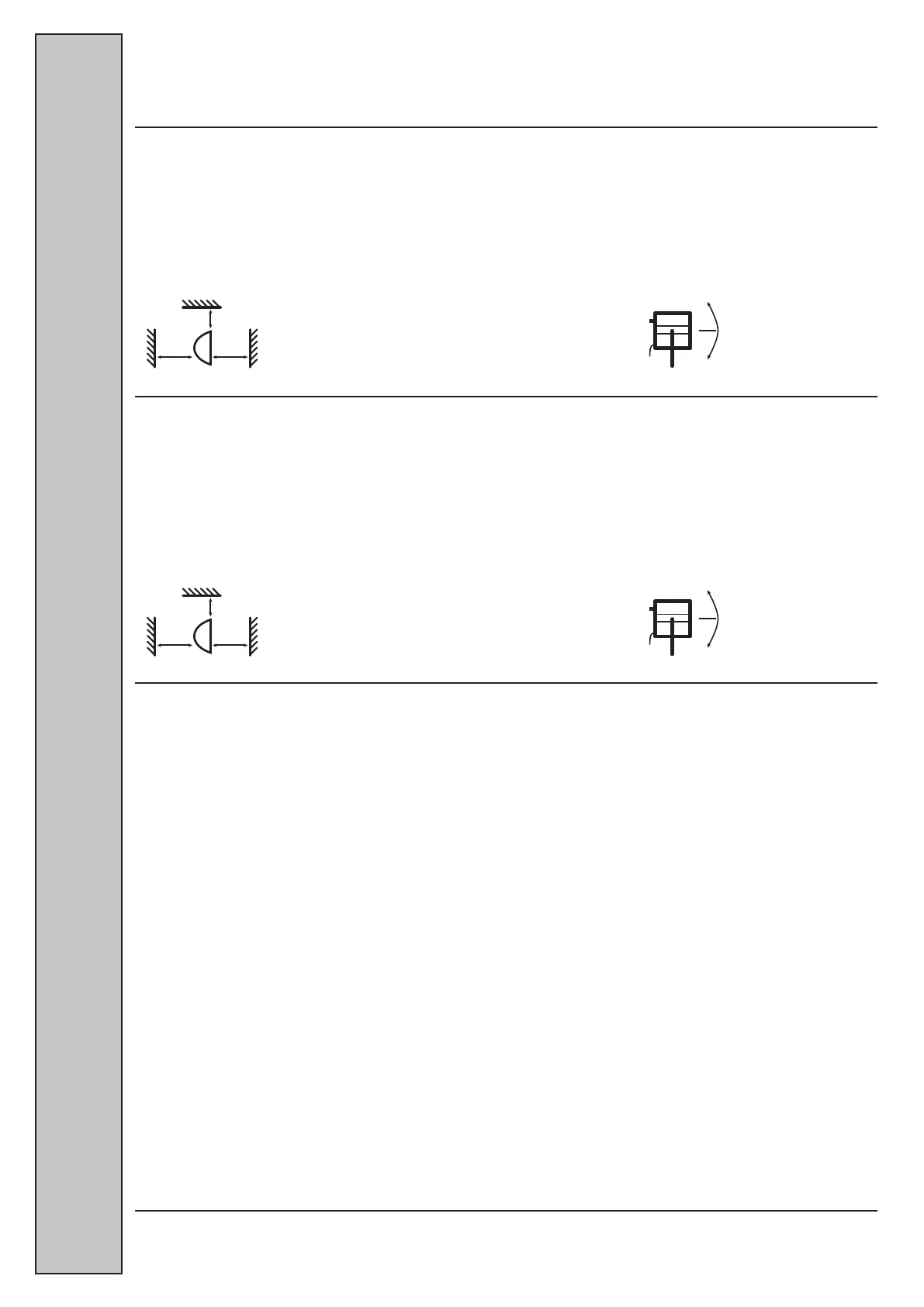 clearances given within the graphic to inflammable material! 45° upwards/down-