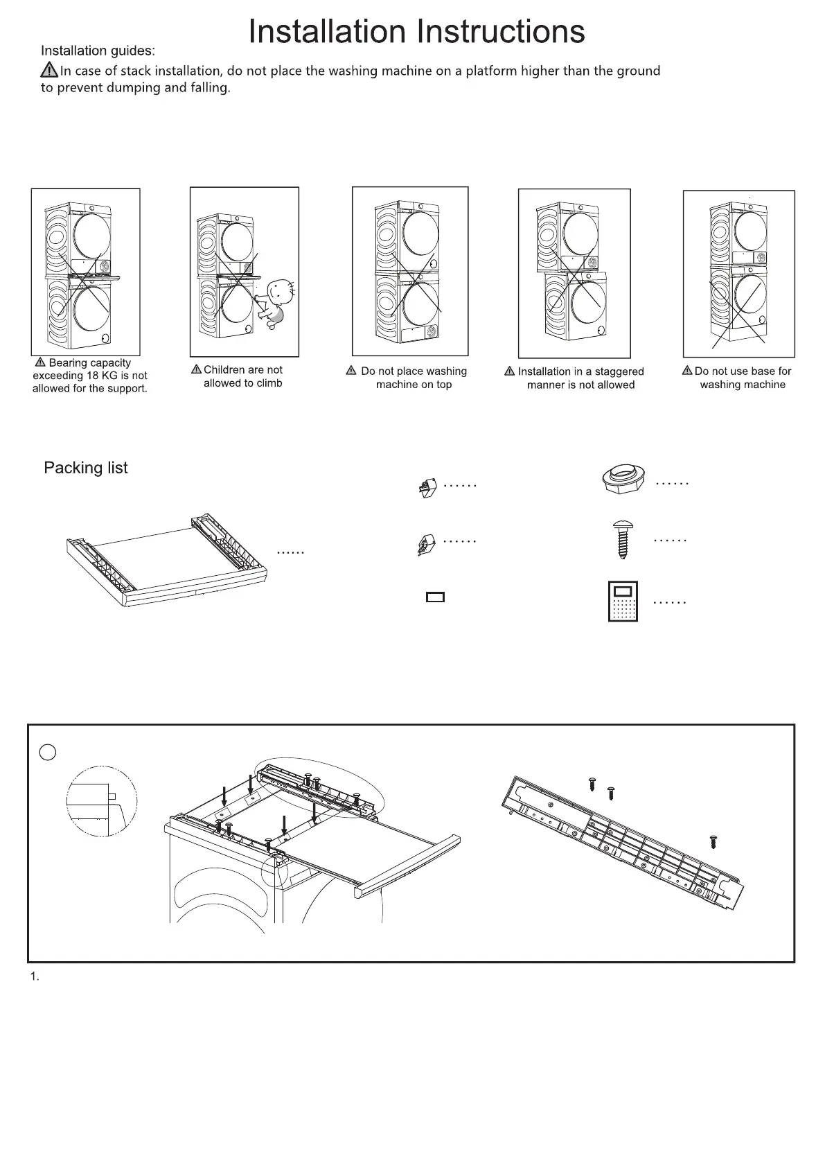 Place the bracket flat on the top cover of the washing machine. Align the front end of the bracket with the side panel according to the