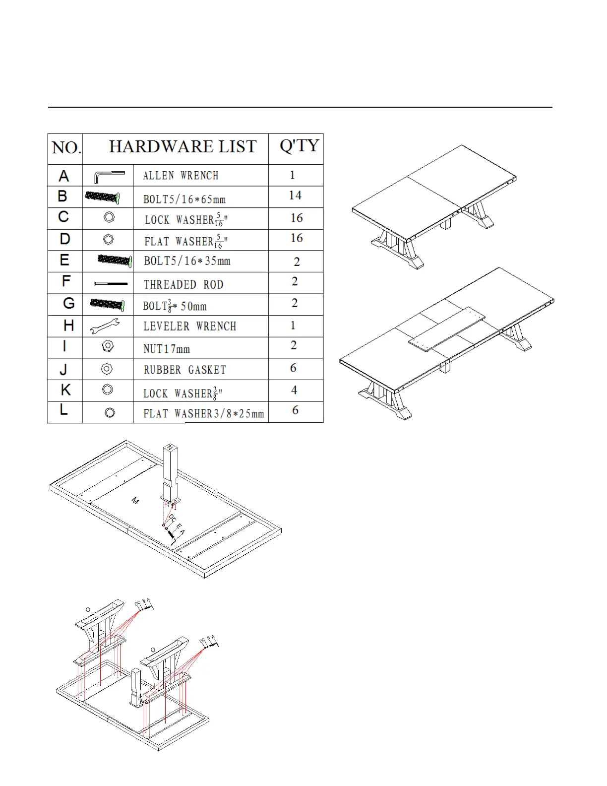 1. Put table top (M) upside
