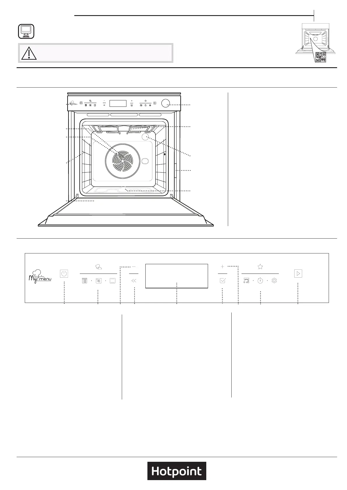 | Hotpoint-teknik (matlagning): | Automatic programmes, Child Lock, Easy to clean, Expert Recipes, Fast pre heat, Multi-Recipe, Multiflow, My Menu, Precision Temperature Control, Quartz grill, Soft closing door, Steam Cooking, Tailored programmes, Touch Control |