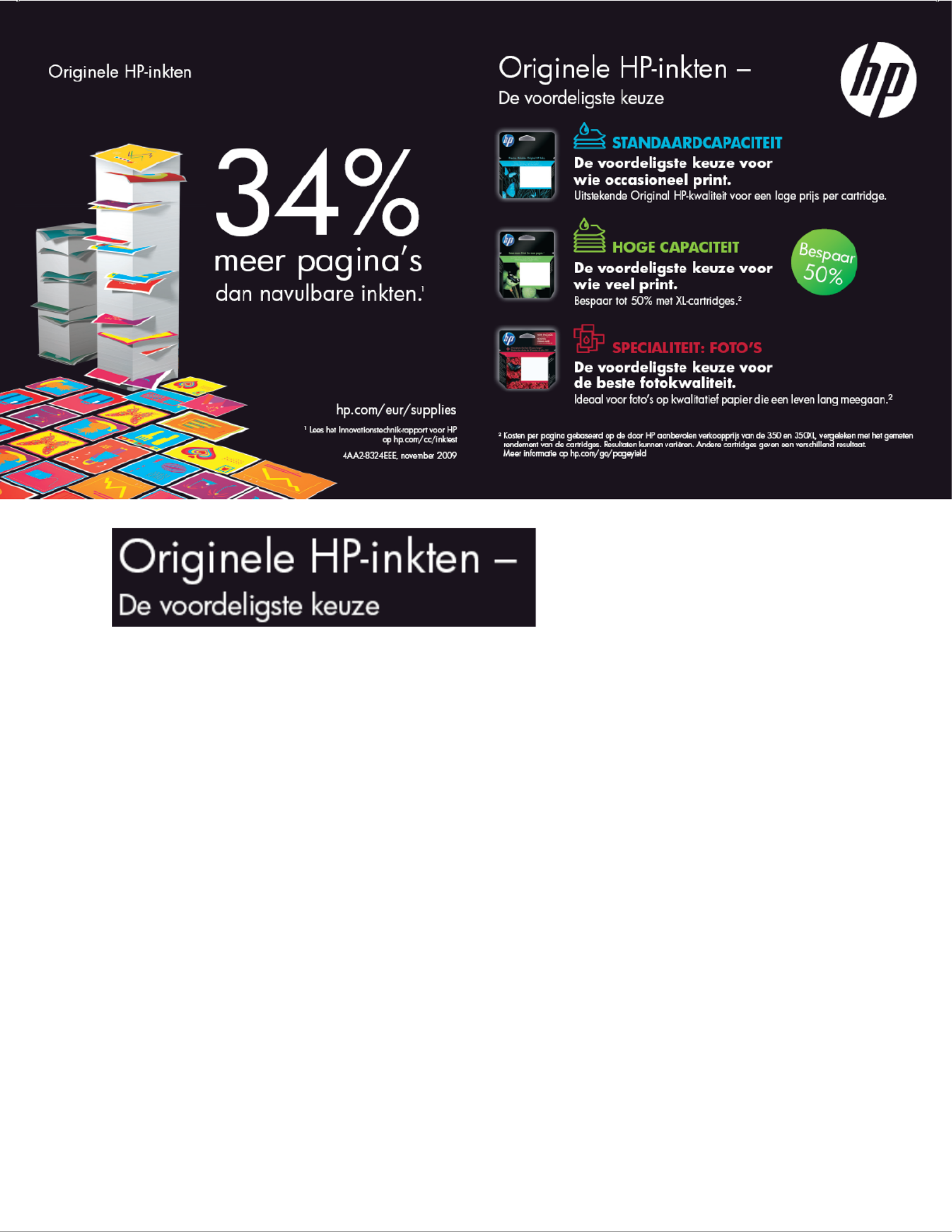 Originele HP inkcartridges 34% meer pagina’s 2 printen dan hervulde cartridges – en gemiddeld meer dan twee