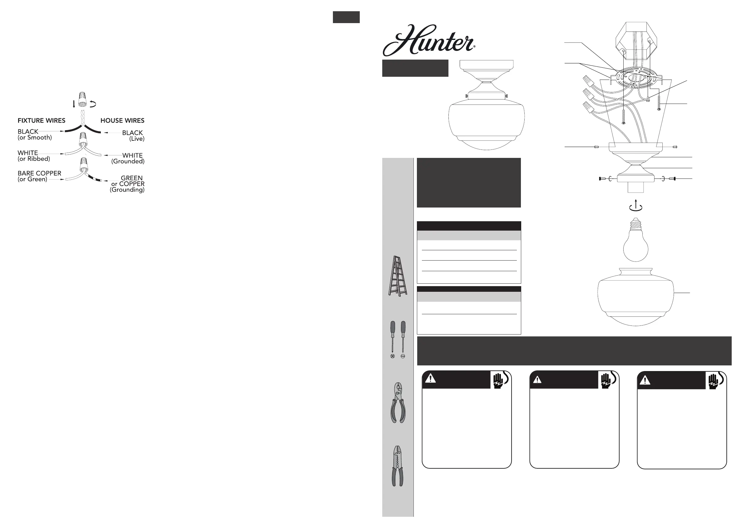 supplied mounting screws (B). Install light bulb (not included) in accordance with the xture’s specications. Do