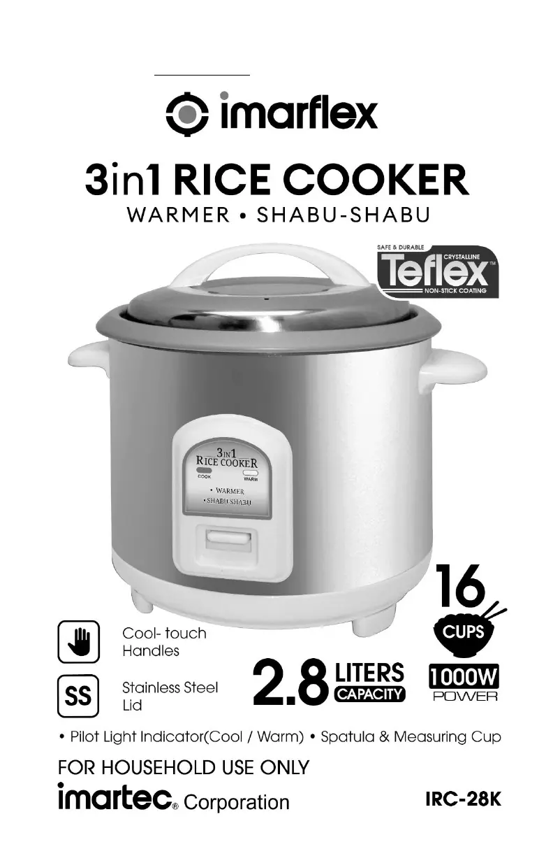 Läs gratis den bruksanvisning för Imarflex IRC-28K (4 sidor) i kategorin Riskokare. Guiden har ansetts hjälpsam av 3 personer och har ett genomsnittsbetyg på 4.0 stjärnor baserat på 2 recensioner. Har du en fråga om Imarflex IRC-28K eller vill du ställa frågor till andra användare av produkten? Ställ en fråga