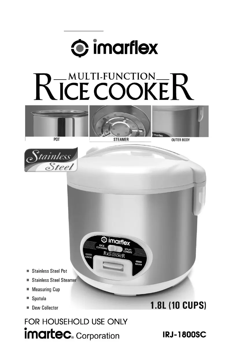 Läs gratis den bruksanvisning för Imarflex IRJ-1800SC (4 sidor) i kategorin Riskokare. Guiden har ansetts hjälpsam av 3 personer och har ett genomsnittsbetyg på 4.3 stjärnor baserat på 2 recensioner. Har du en fråga om Imarflex IRJ-1800SC eller vill du ställa frågor till andra användare av produkten? Ställ en fråga