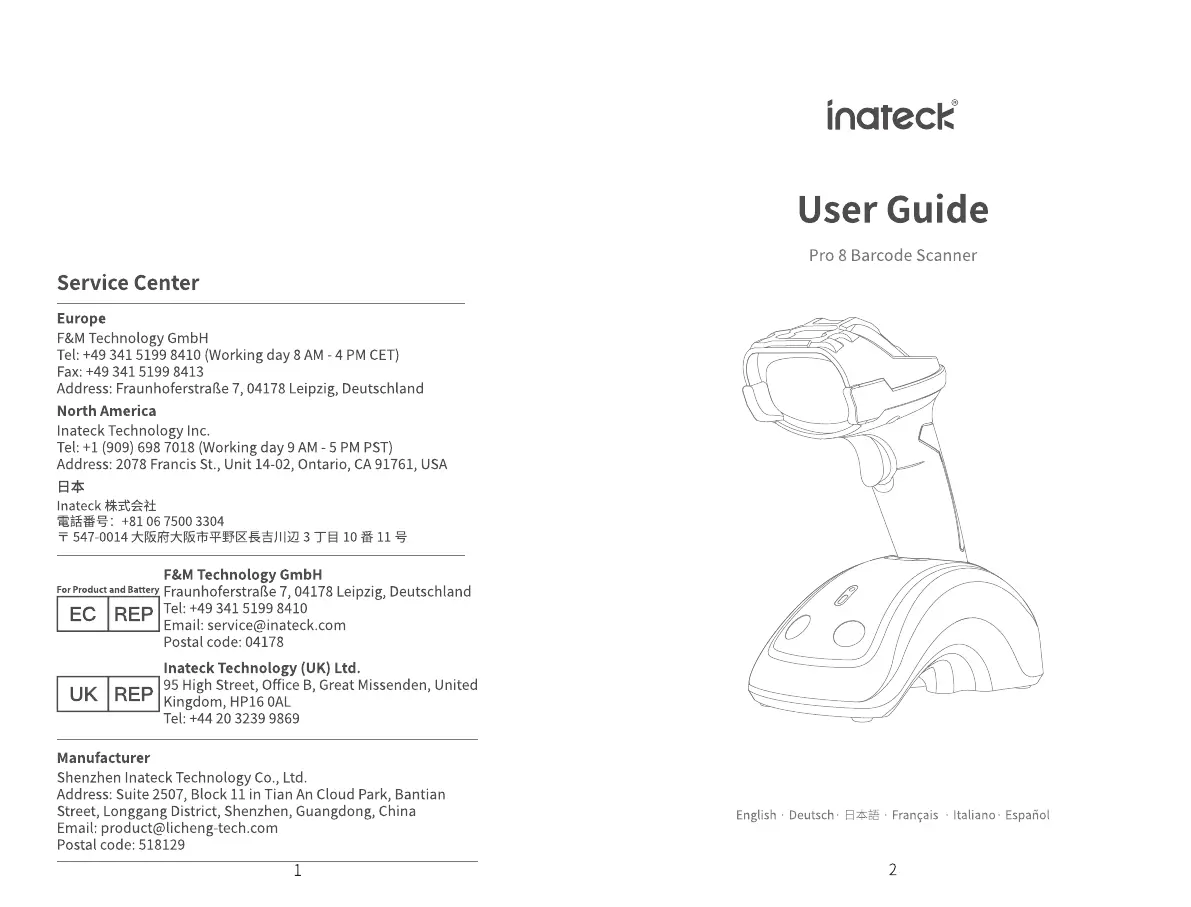 Läs gratis den bruksanvisning för Inateck PRO 8 (21 sidor) i kategorin streckkodsläsare. Guiden har ansetts hjälpsam av 3 personer och har ett genomsnittsbetyg på 5.0 stjärnor baserat på 3 recensioner. Har du en fråga om Inateck PRO 8 eller vill du ställa frågor till andra användare av produkten? Ställ en fråga