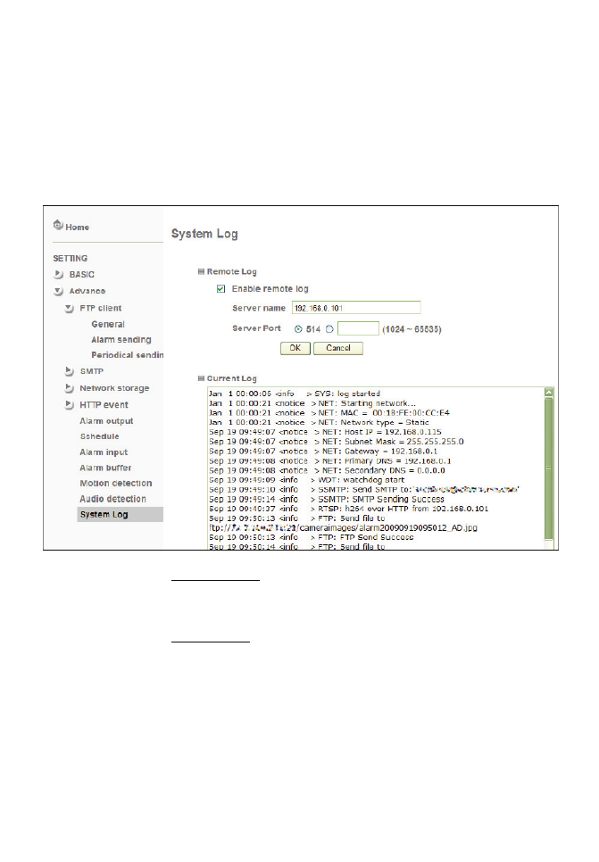 program is ready to receive Syslog messages from the network camera.