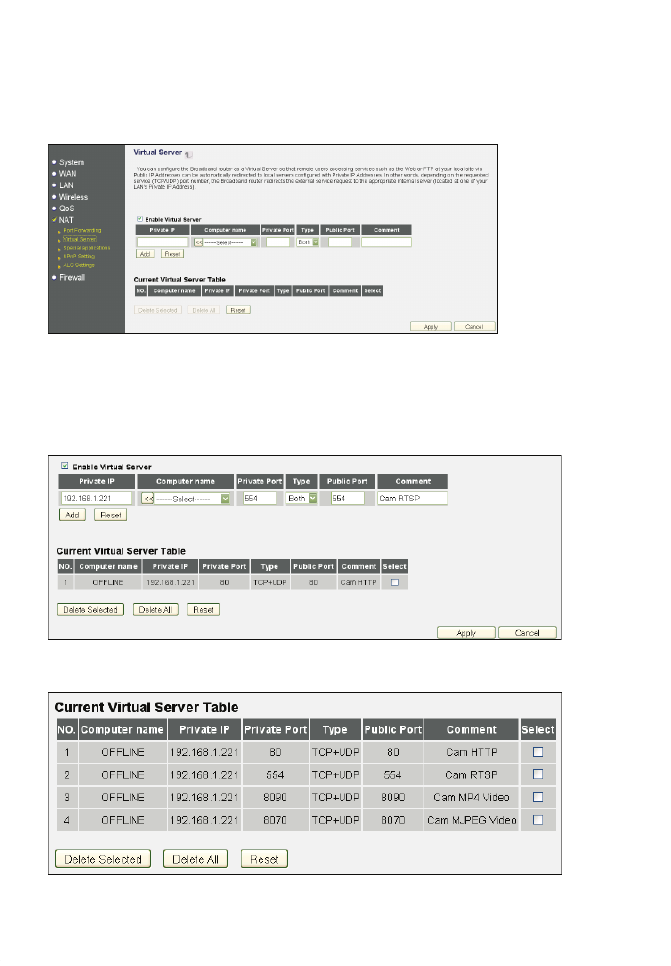 Click on NAT -> Virtual Server. Check (x) Enable Virtual Server.
