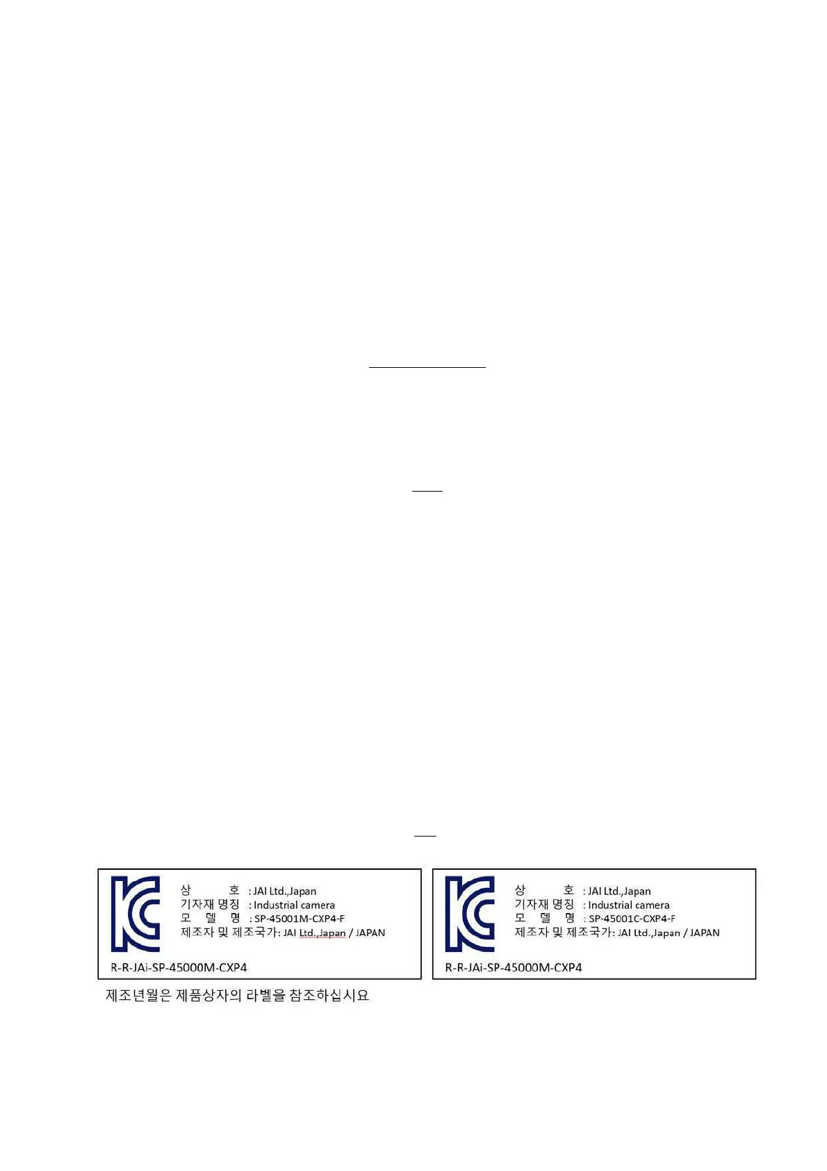 compatibility), JAI Ltd., Japan declares that SP-45001M-CXP4 and SP-45001C-CXP4 complies with the following