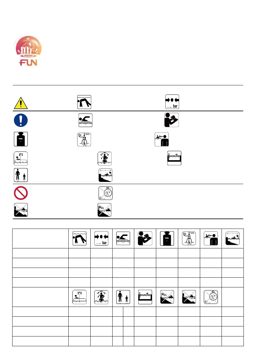 Max. load capacity          Fully inflate all air chambers      Always supervise children in water