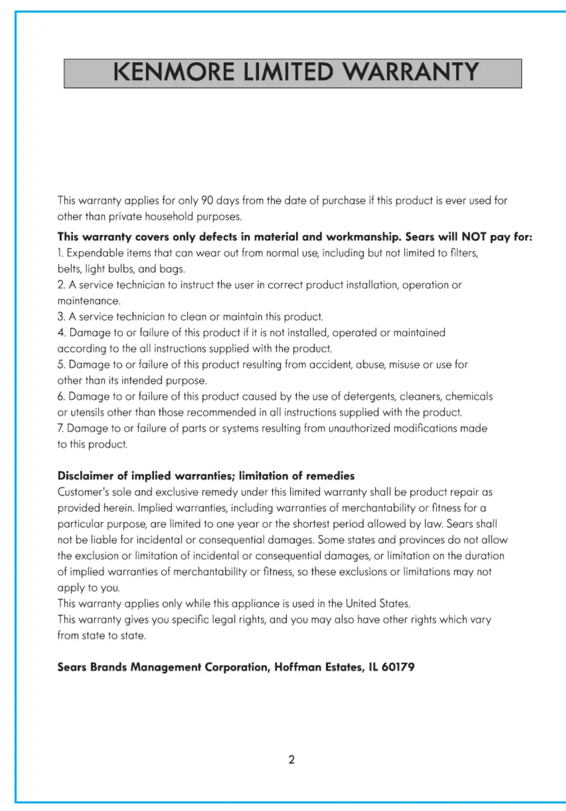 KENMORE LIMITED WARRANTY