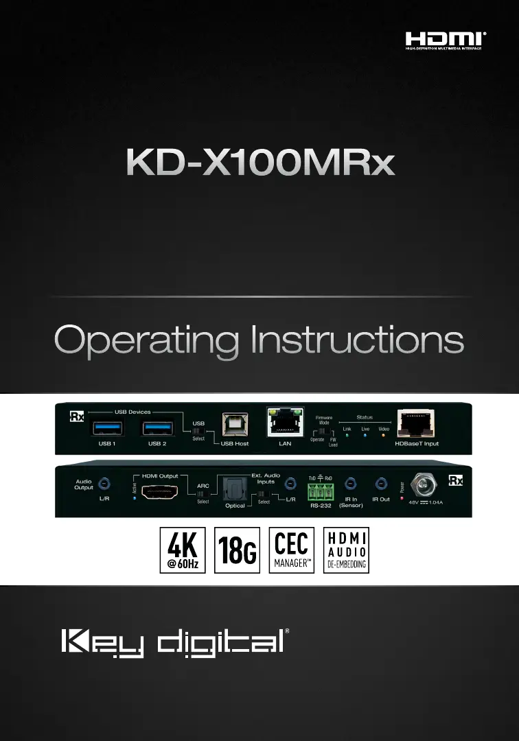 KD-X100MRx is a 4K/UHD, HDCP2.2 compliant HDBaseT receiver with 18Gbps bandwidth,