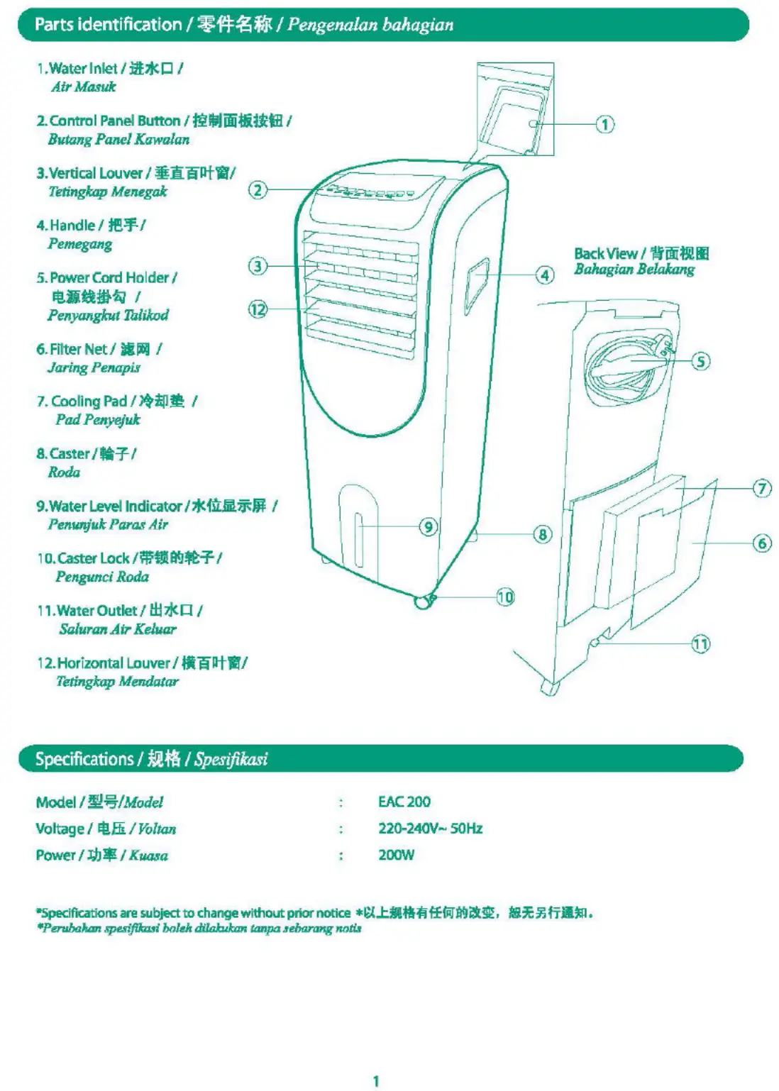 Khind EAC 200 Bruksanvisning