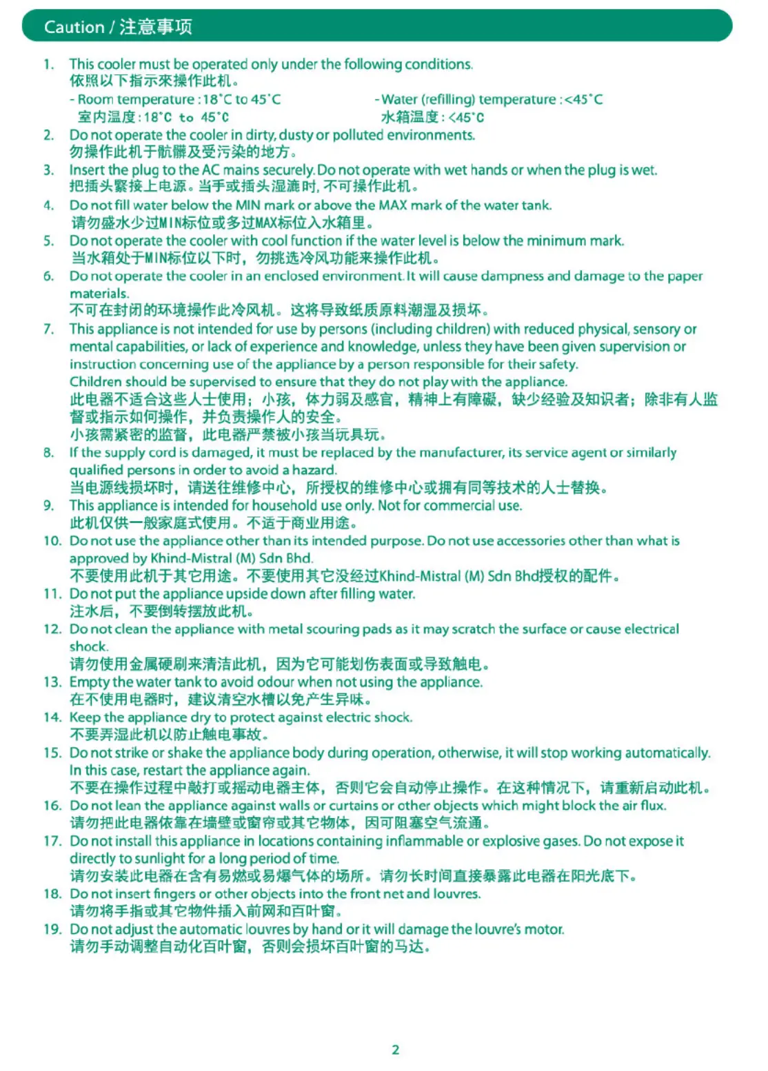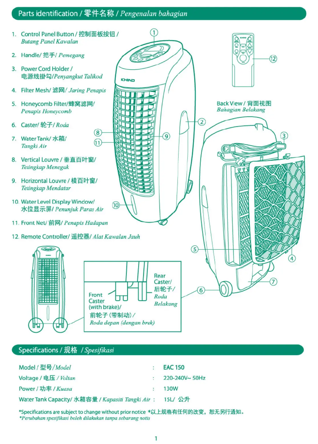 Khind EAC150 Bruksanvisning