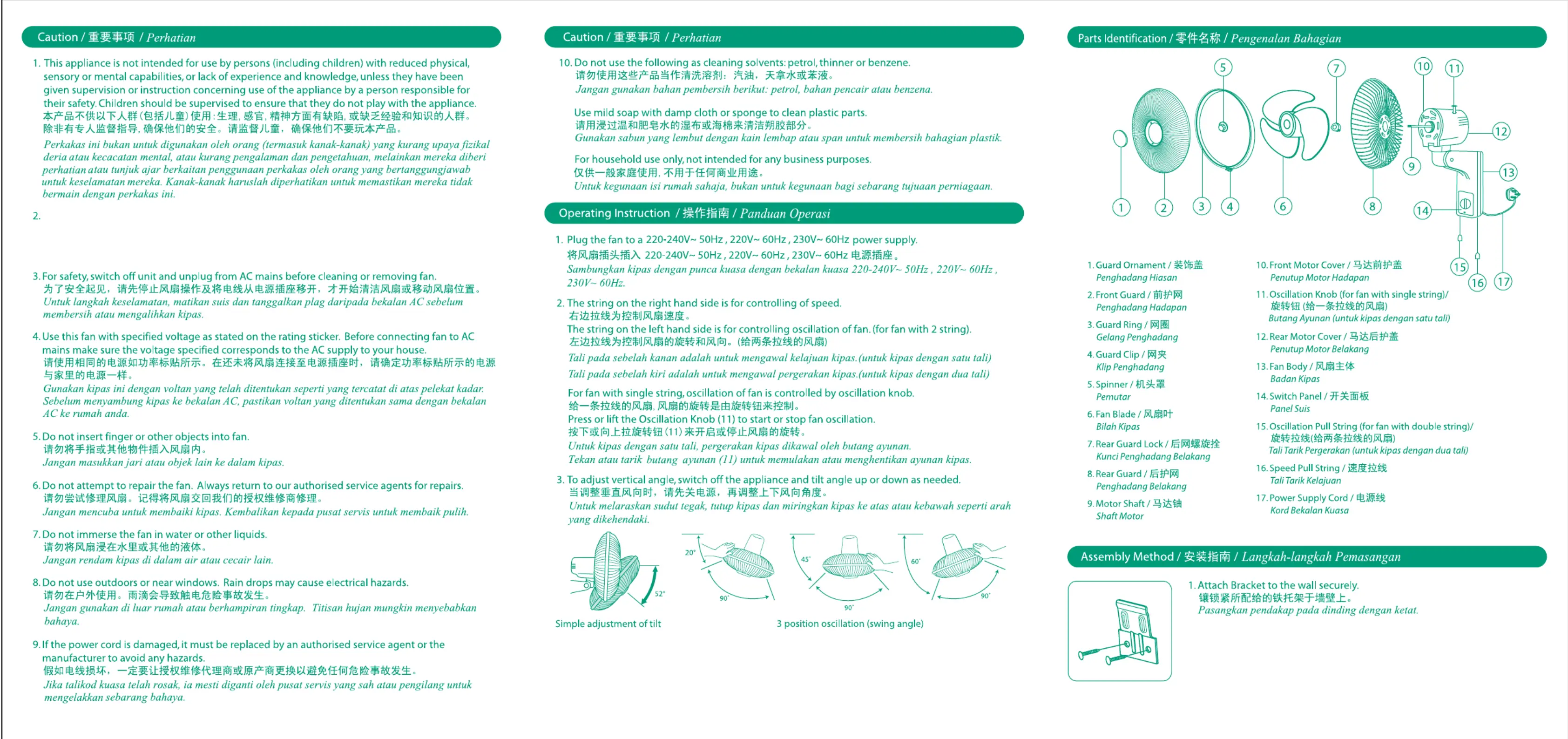 hushålls fläkt Manualer