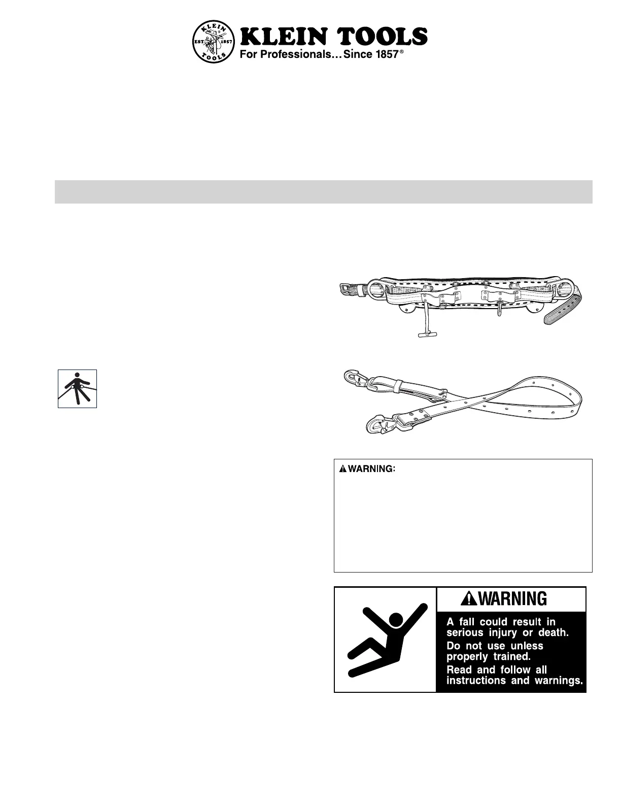 Note: Klein’s lineman’s body belts are for posi-