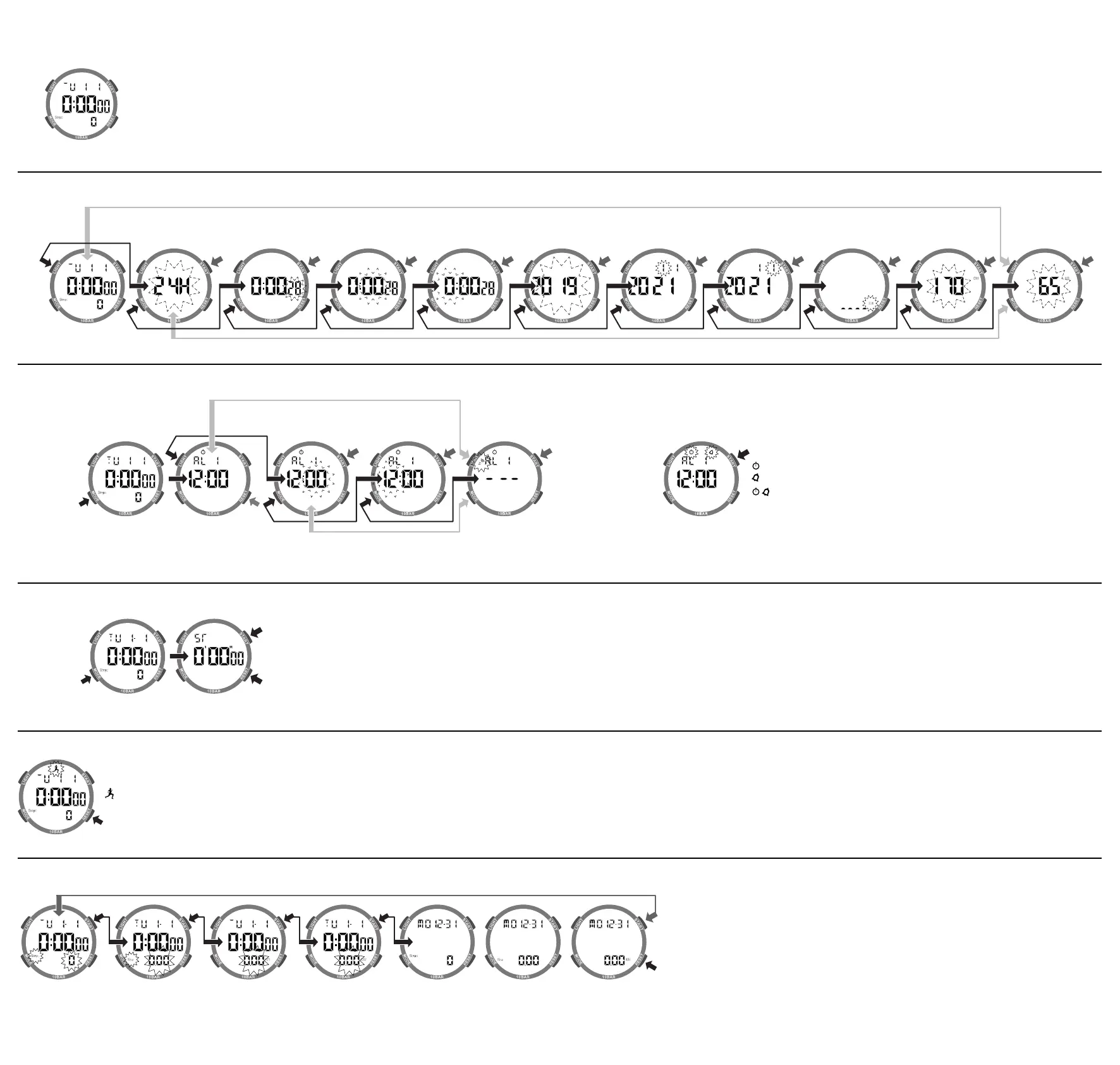 - Naar “0” resetten terwijl de stopwatch niet loopt