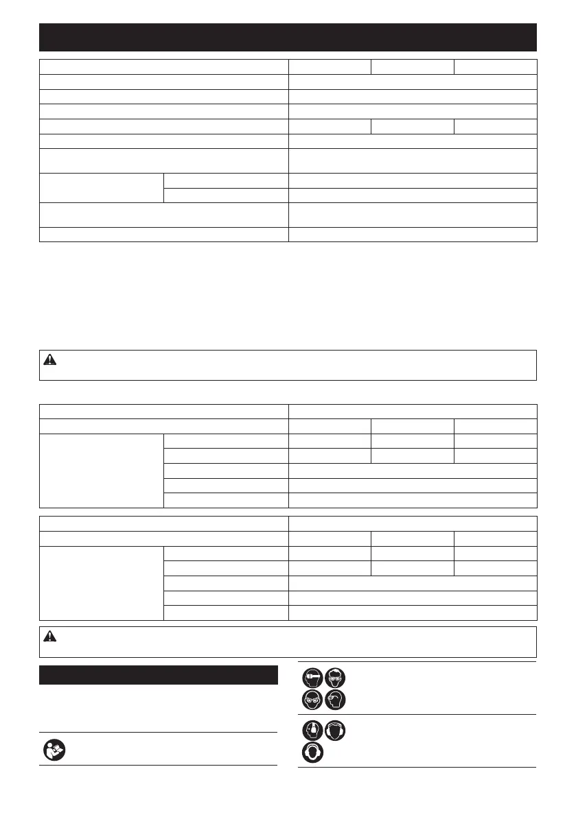 • The weight may differ depending on the attachment(s), including the battery cartridge. The lightest and heavi-