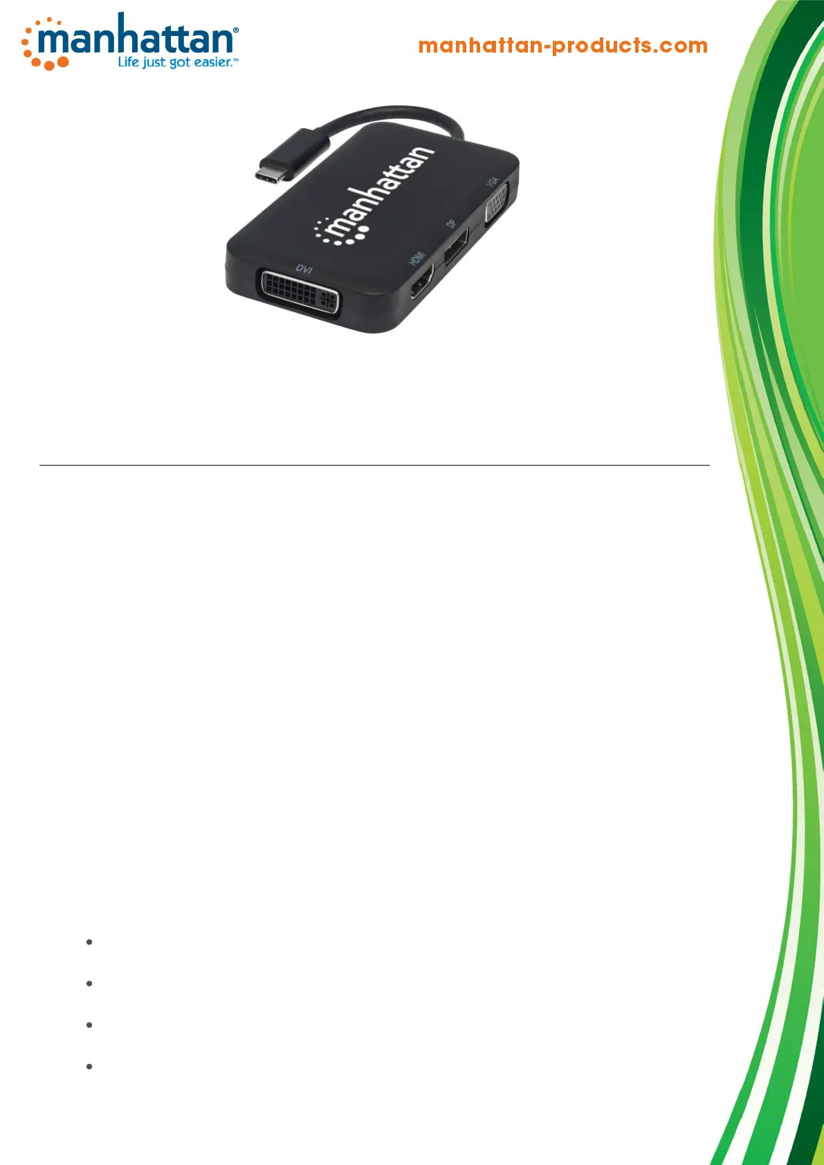 DVI display (monitor, projector, etc.). The Manhattan USB-C 4-in-1 Audio/Video