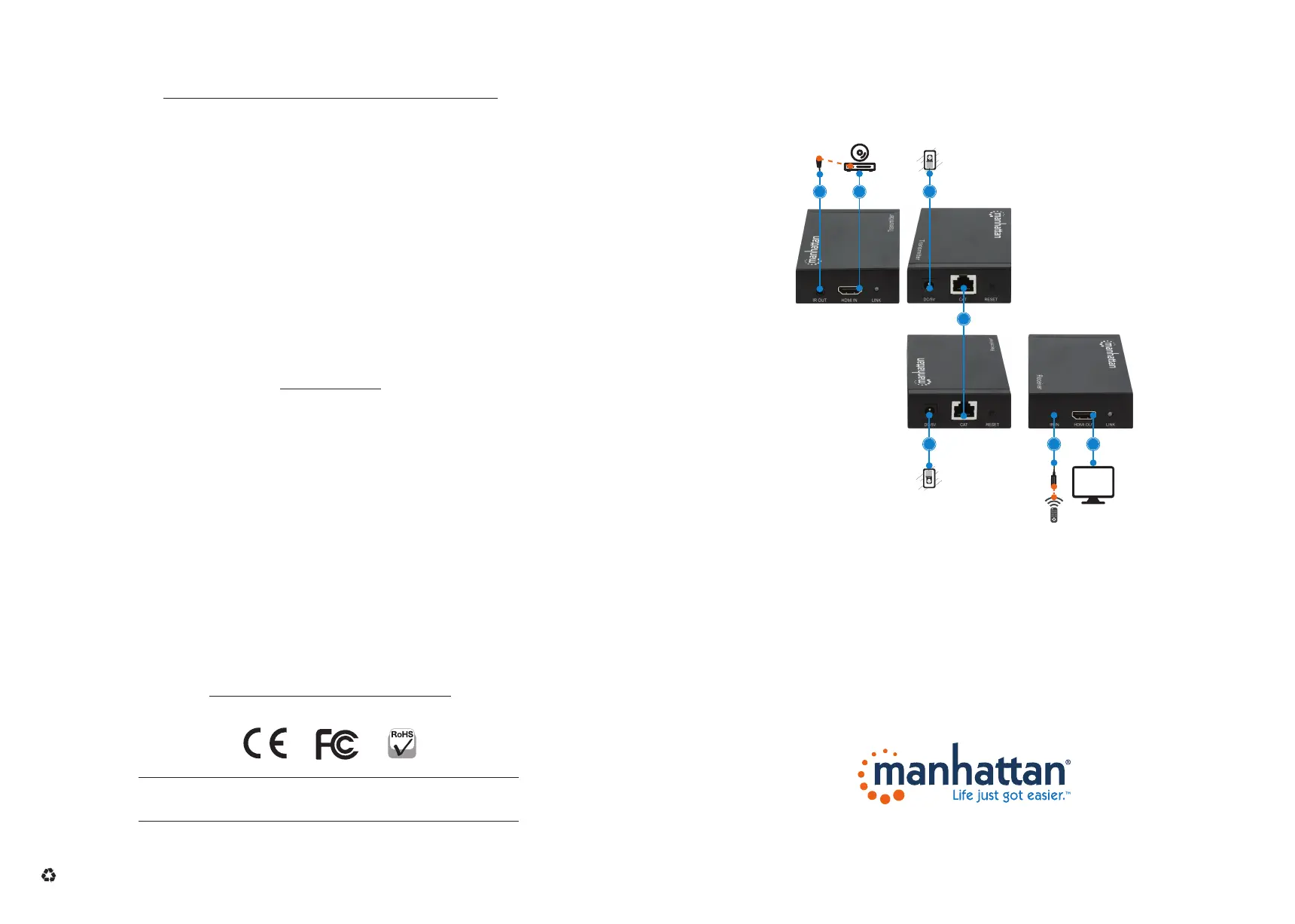 Läs gratis den bruksanvisning för Manhattan 207645 (2 sidor) i kategorin AV extender. Guiden har ansetts hjälpsam av 14 personer och har ett genomsnittsbetyg på 3.7 stjärnor baserat på 7.5 recensioner. Har du en fråga om Manhattan 207645 eller vill du ställa frågor till andra användare av produkten? Ställ en fråga