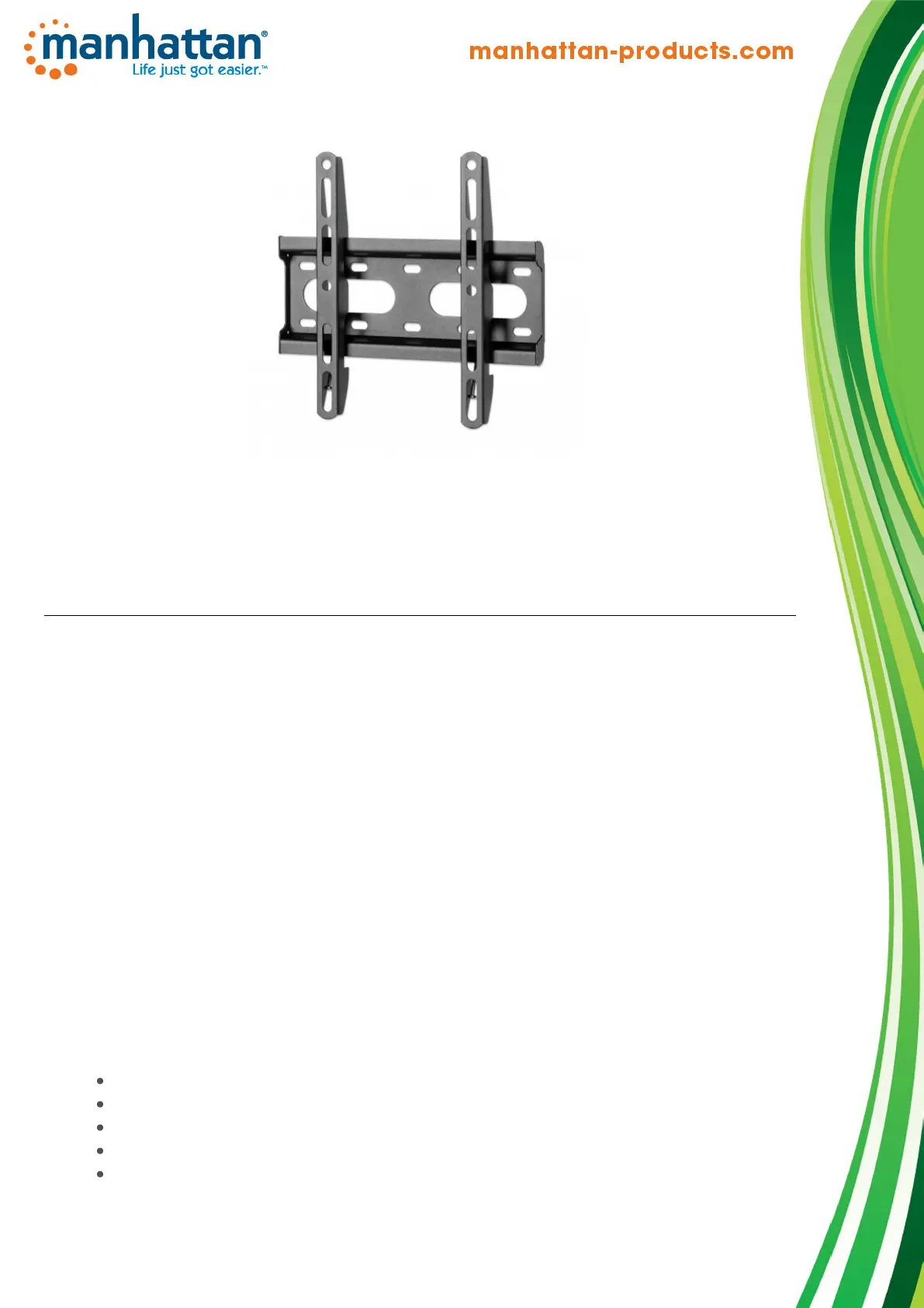 Läs gratis den bruksanvisning för Manhattan 462259 (3 sidor) i kategorin Wandstöd. Guiden har ansetts hjälpsam av 17 personer och har ett genomsnittsbetyg på 4.4 stjärnor baserat på 9 recensioner. Har du en fråga om Manhattan 462259 eller vill du ställa frågor till andra användare av produkten? Ställ en fråga