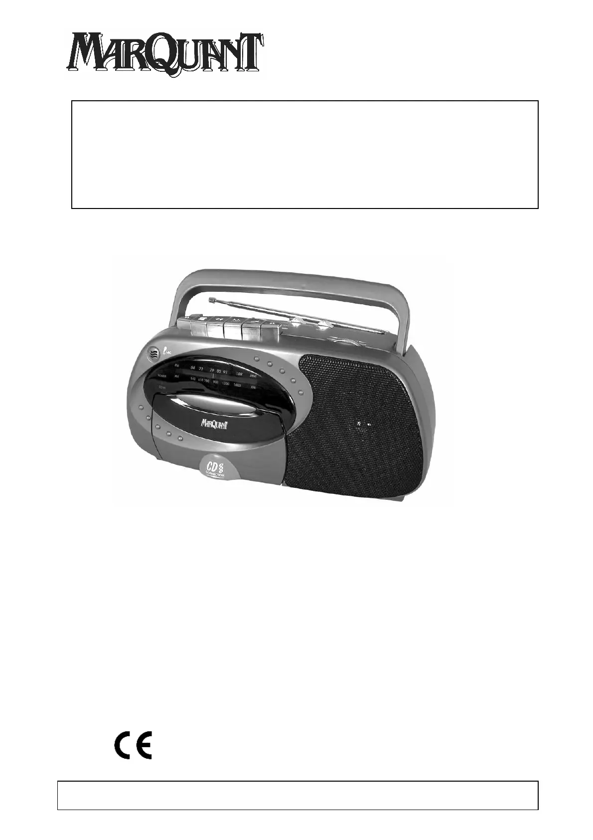 Läs gratis den bruksanvisning för Marquant MPR113 (3 sidor) i kategorin Radio. Guiden har ansetts hjälpsam av 21 personer och har ett genomsnittsbetyg på 4.1 stjärnor baserat på 6 recensioner. Har du en fråga om Marquant MPR113 eller vill du ställa frågor till andra användare av produkten? Ställ en fråga