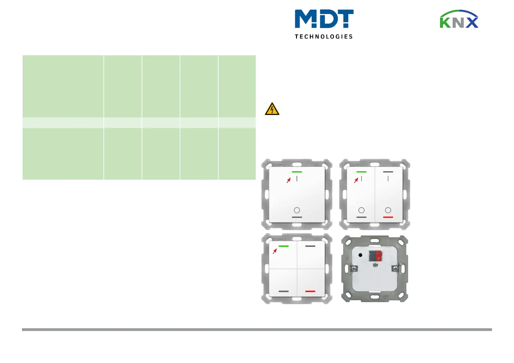 The MDT Push Button Lite releases KNX telegrams depending on the paramerization after pressing the buttons. The push buttons can