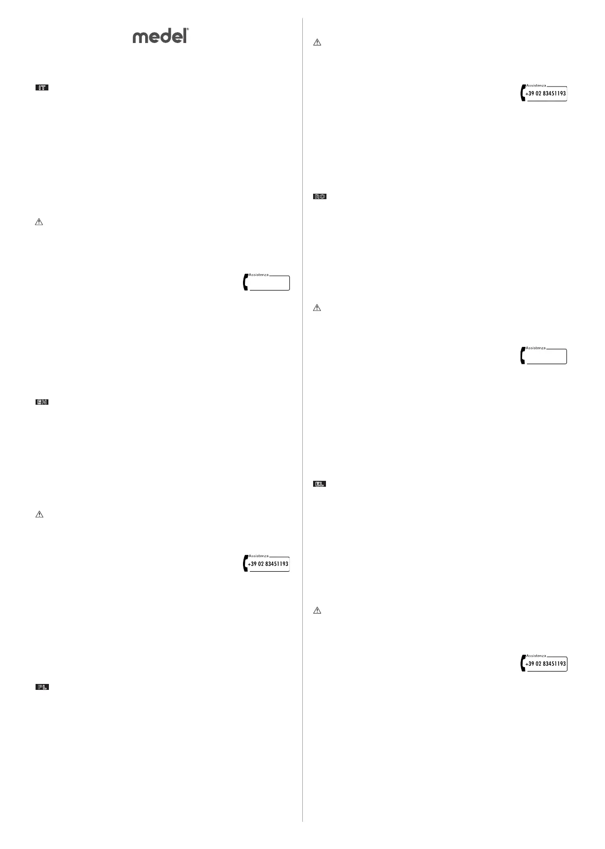 • The warranty does not imply any compensation for damages, either direct or indirect, of any kind, to people or property during the period in