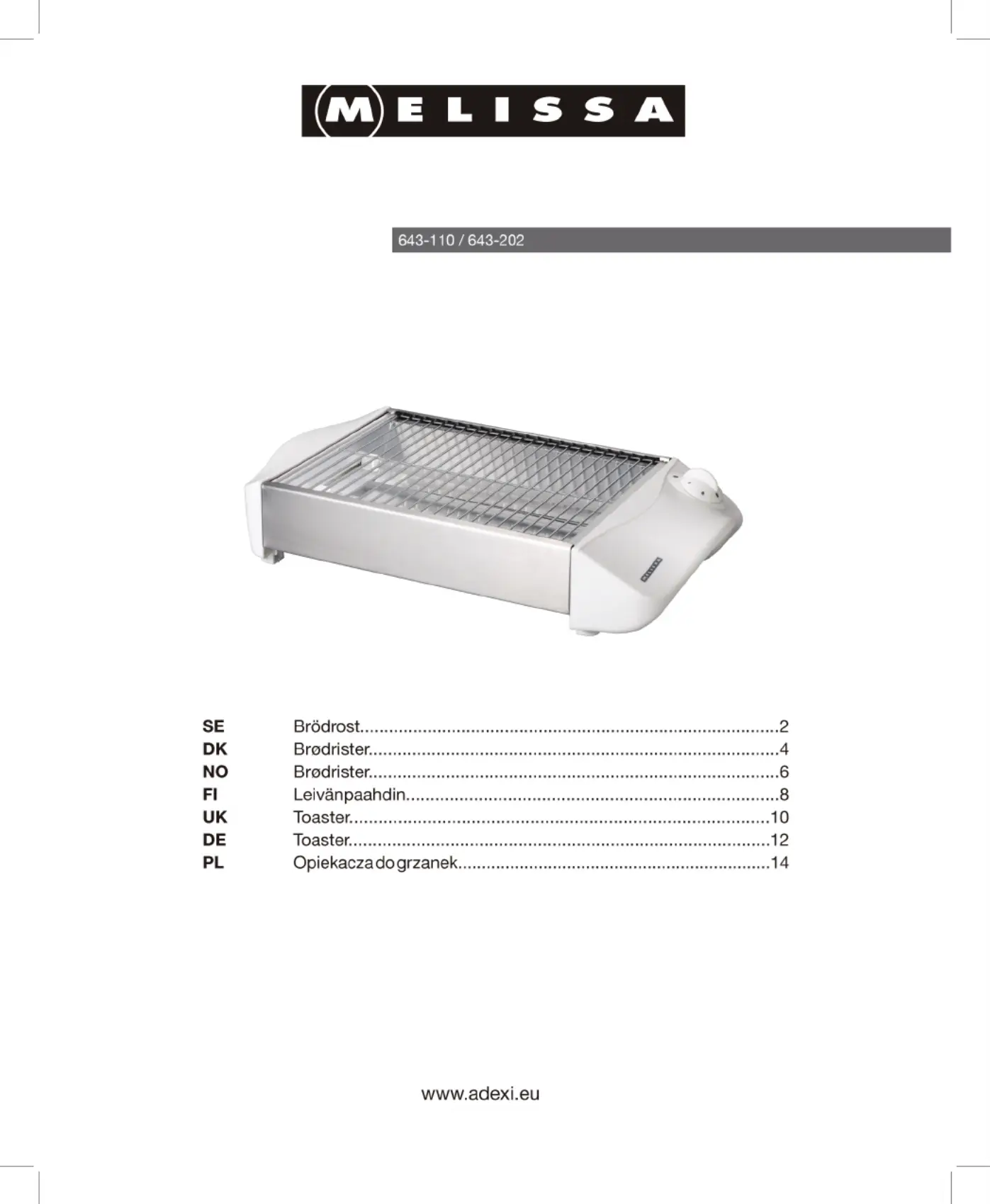 Brödrost Melissa Manualer