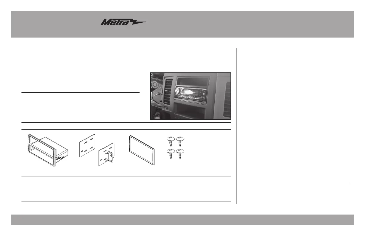 • A) Radio housing • B) Radio brackets (C) • C) ISO DDIN trimplate • D) (4) #8 x 3/8” Phillips screws
