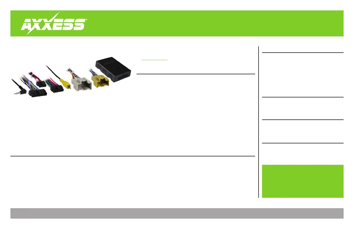 Visit AxxessInterfaces.com for more detailed information about the product and up-to-date vehicle