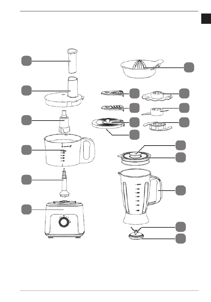 • Zubehör und Anbauteile der Küchenmaschine (Siehe „Geräteübersicht“ auf Seite 8)