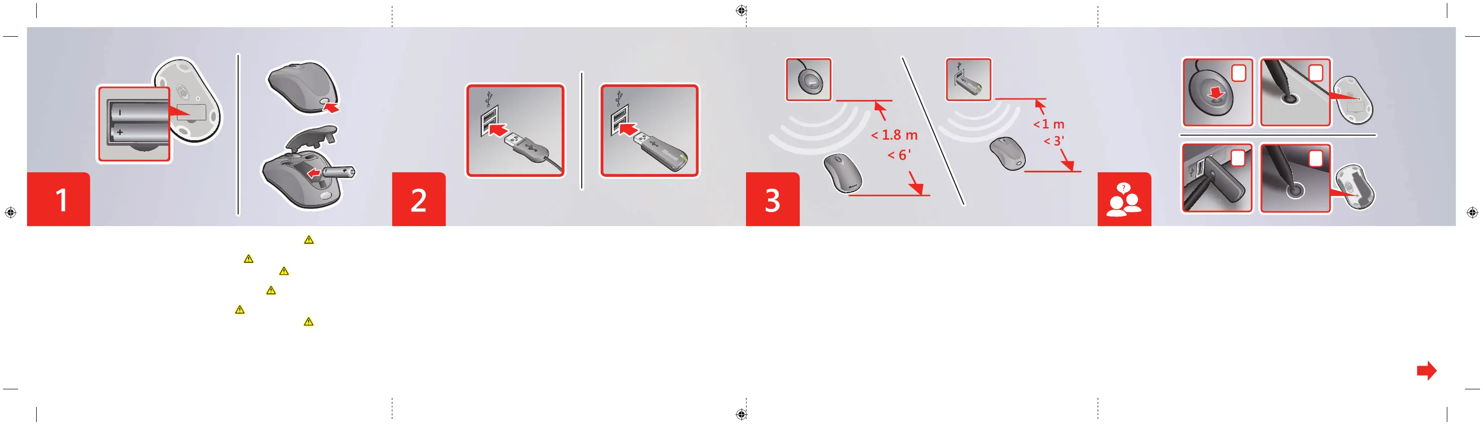 ITA: Posizionare il mouse senza fi li e il ricevitore come indicato sopra.