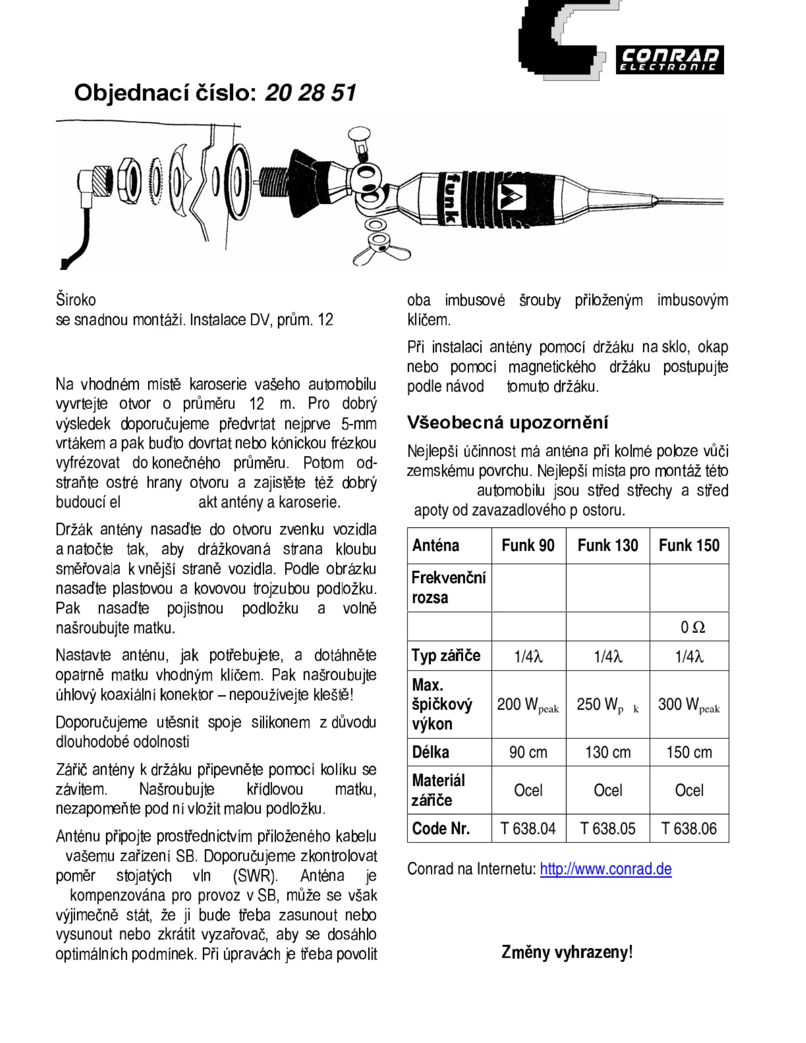 Anténa Funk 90 Funk 130 Funk 150