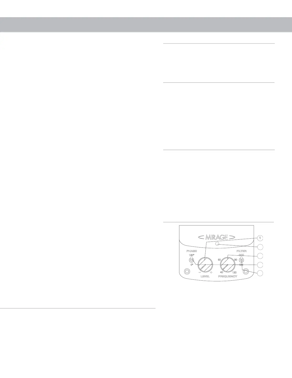 acteristics of your listening room and its interaction with your MIRAGE subwoofer. An